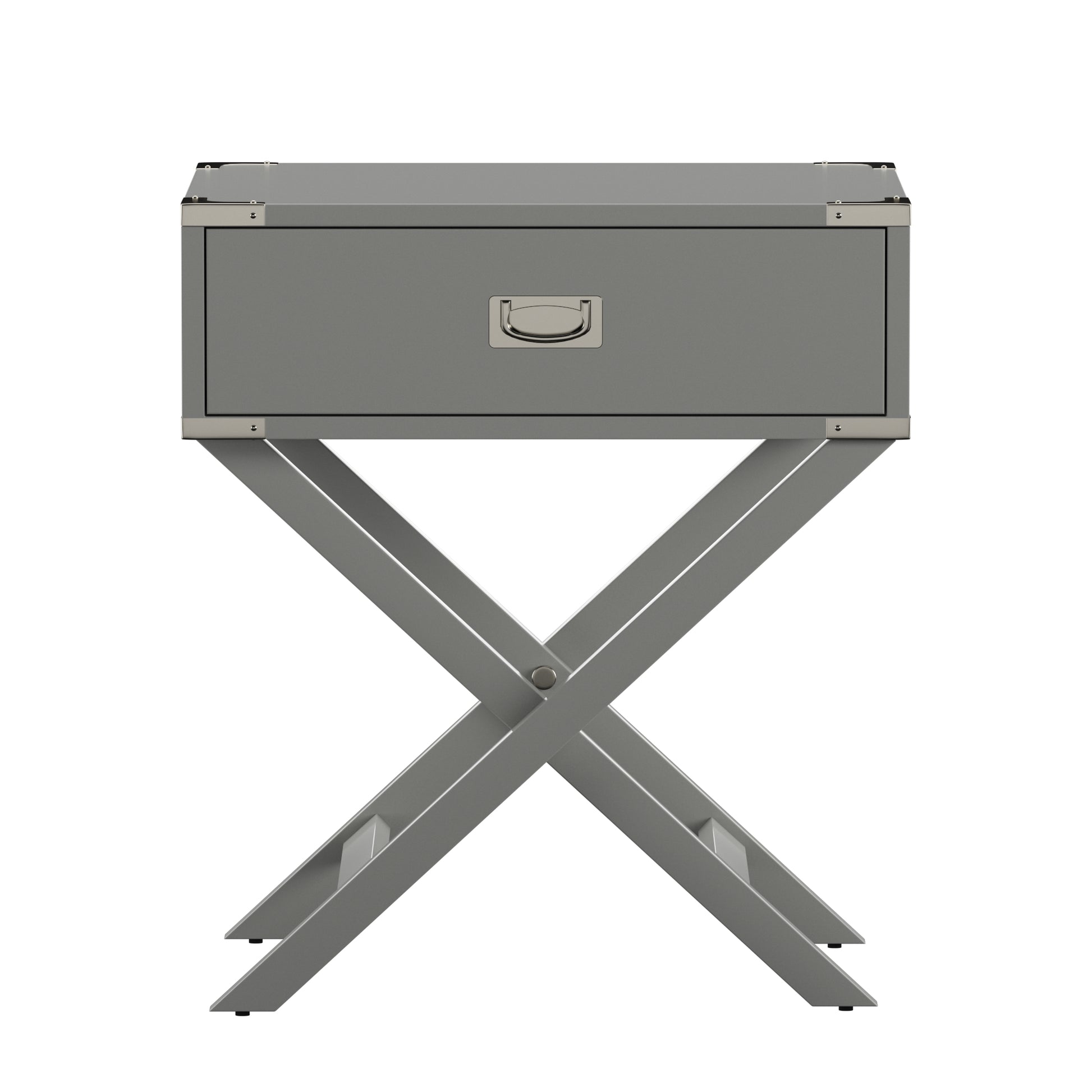 Complete your family room or reading nook with this accent table. This table's campaign-style design blends functionality with casual appeal, and its single drawer offers handy storage for books, office supplies, or electronic devices. Dovetail drawers with smooth ball bearing glides ensure smooth, easy operation for lasting service.