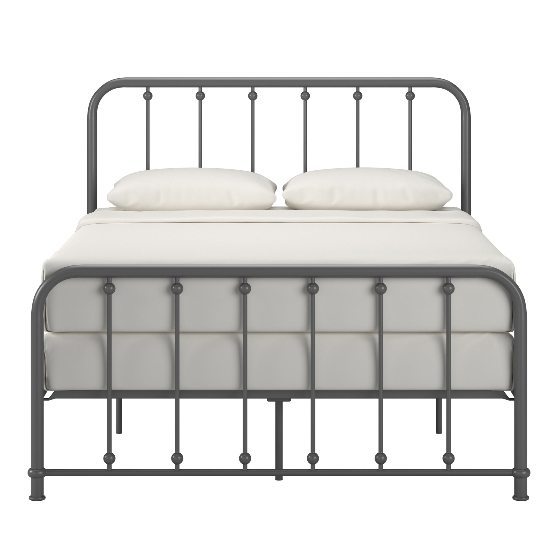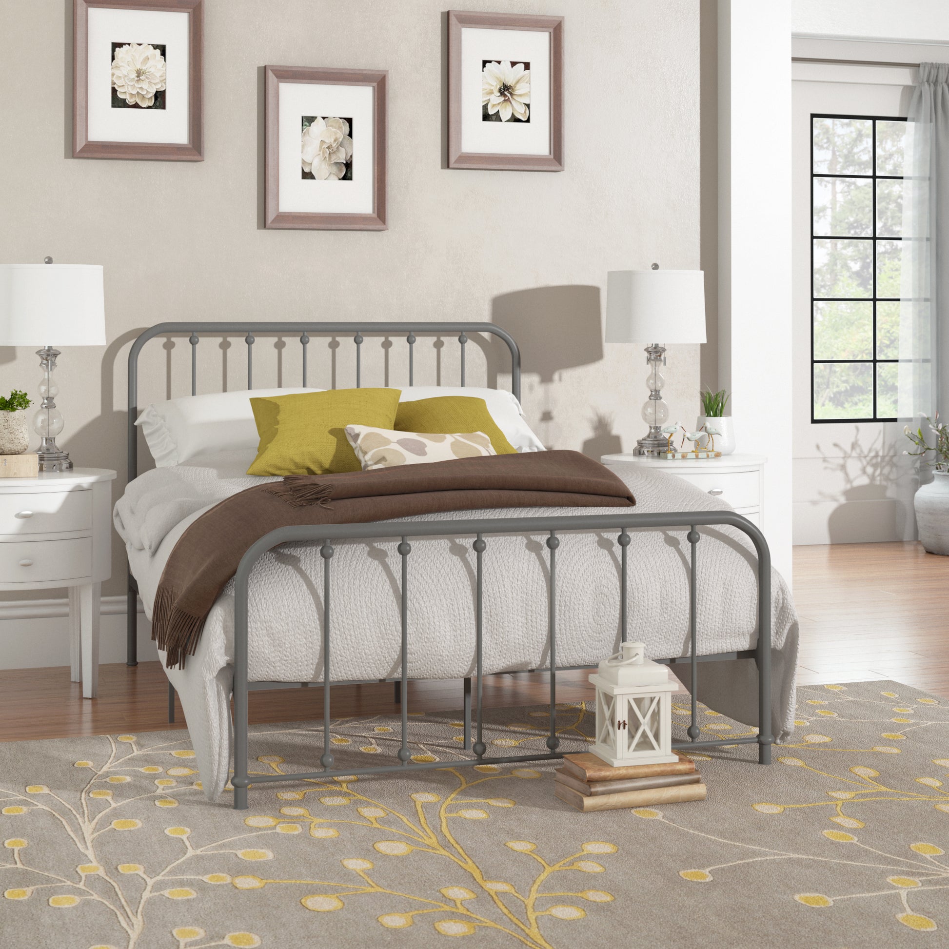 Showing off effortless, classic style, this metal bed pairs well with a traditional space. The beaded spindle detailing of its curved headboard and footboard gives this bed a romantic, rustic style, as a sleek metal construction gives this bed sturdy support for sturdy, daily enjoyment.