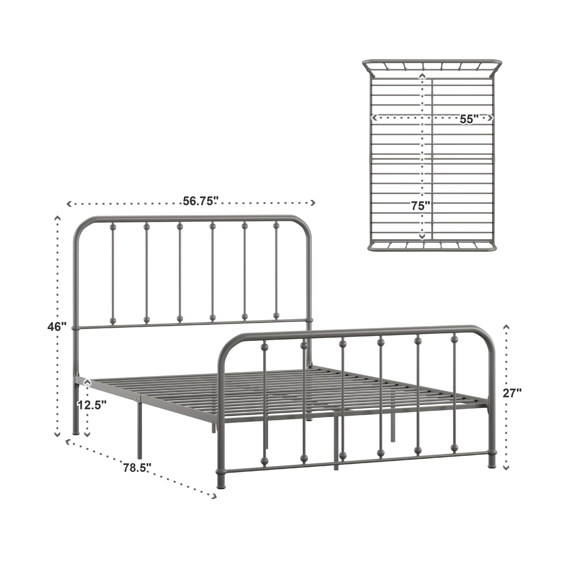 Beaded Spindle Metal Platform Bed - Frost Gray, Full Size (Full Size)