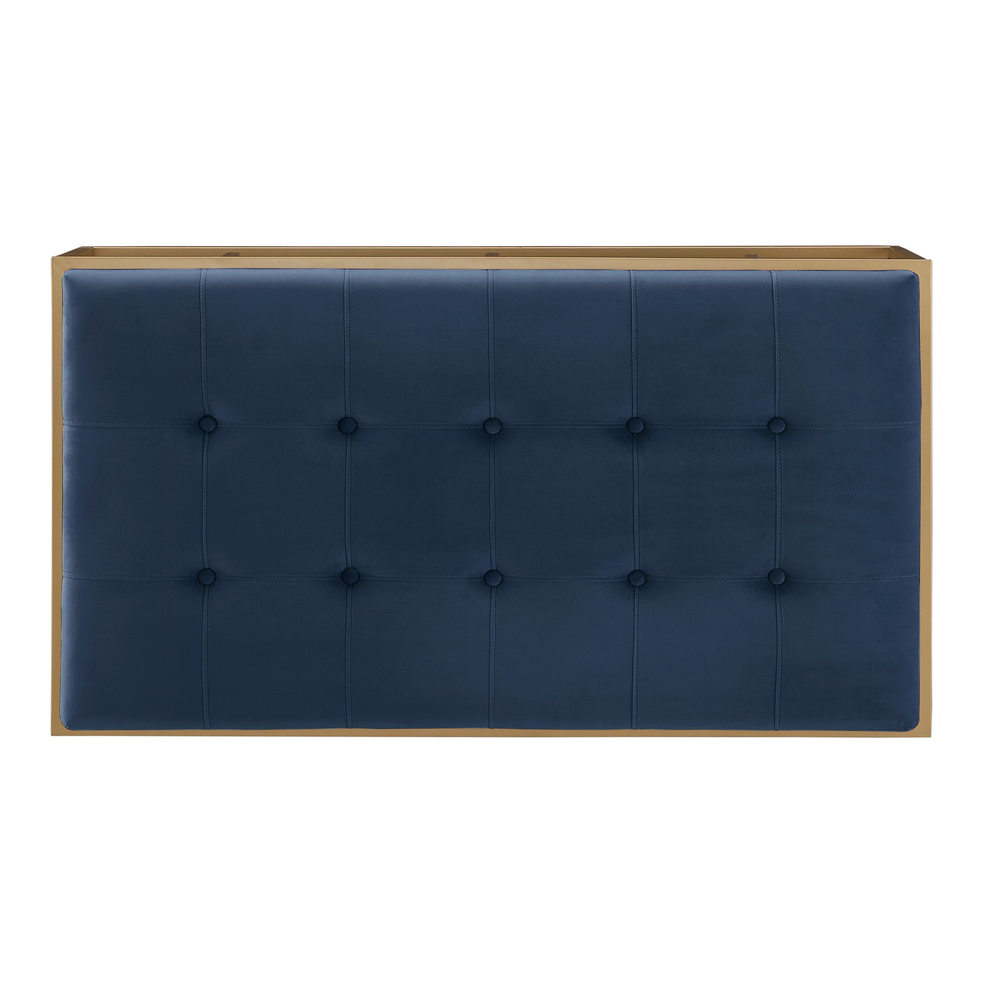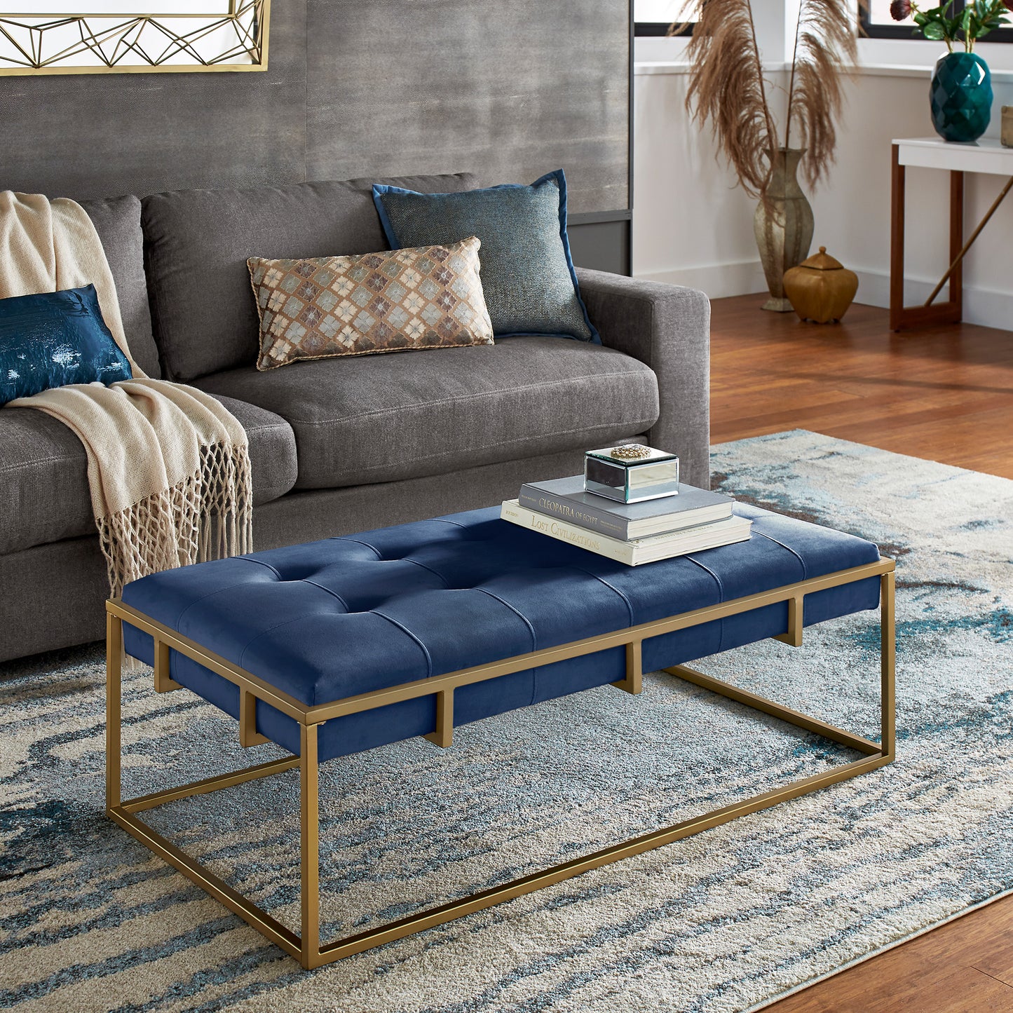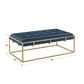 Gold Finish Velvet Button Tufted Rectangular Ottoman - Blue, Rectangular