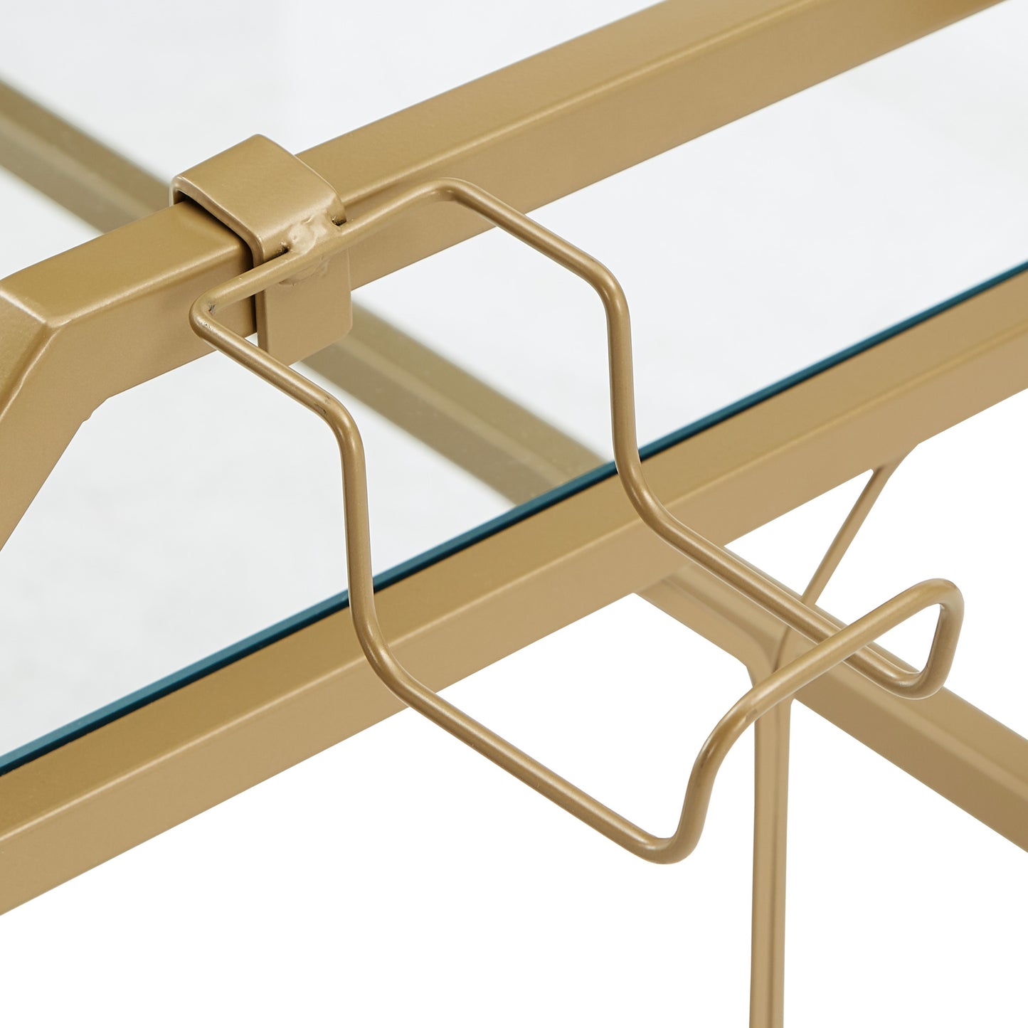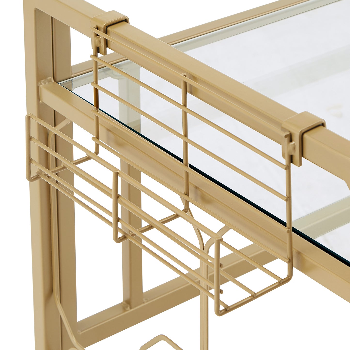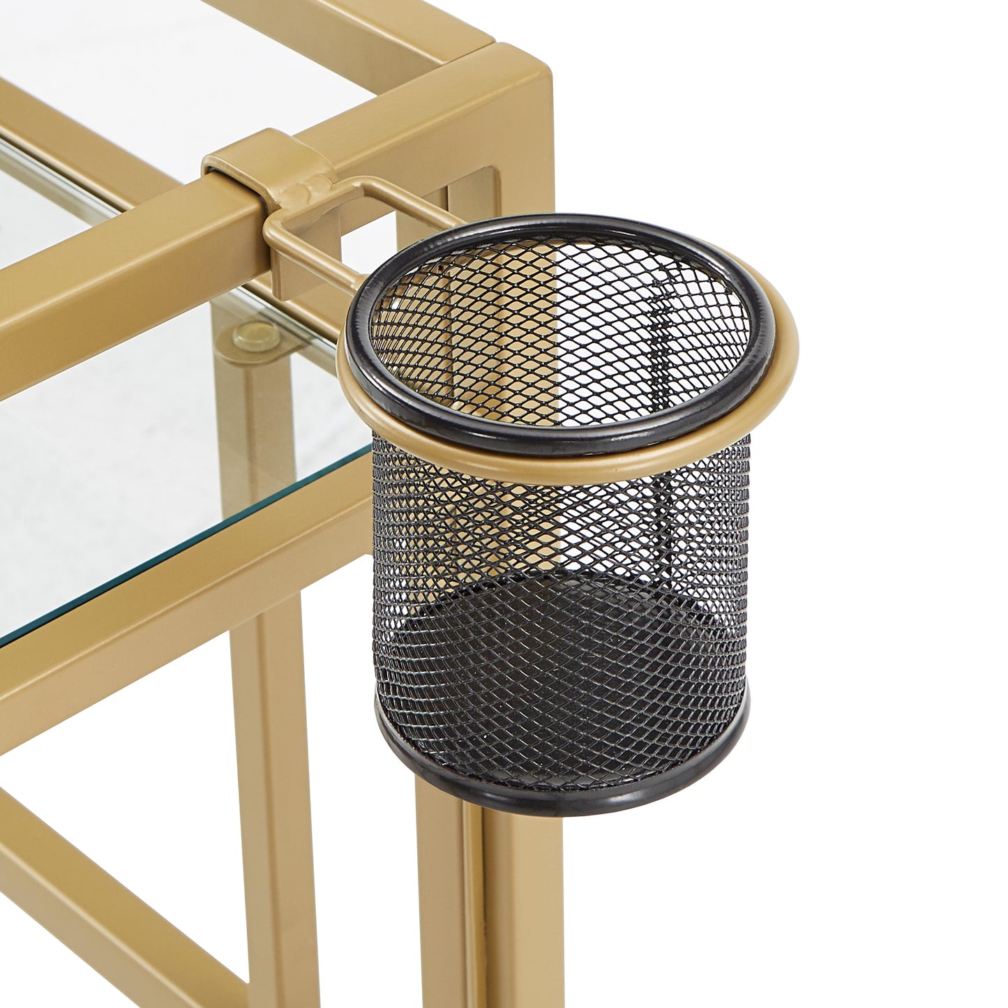 - Gold, powder-coated finish on metal frame