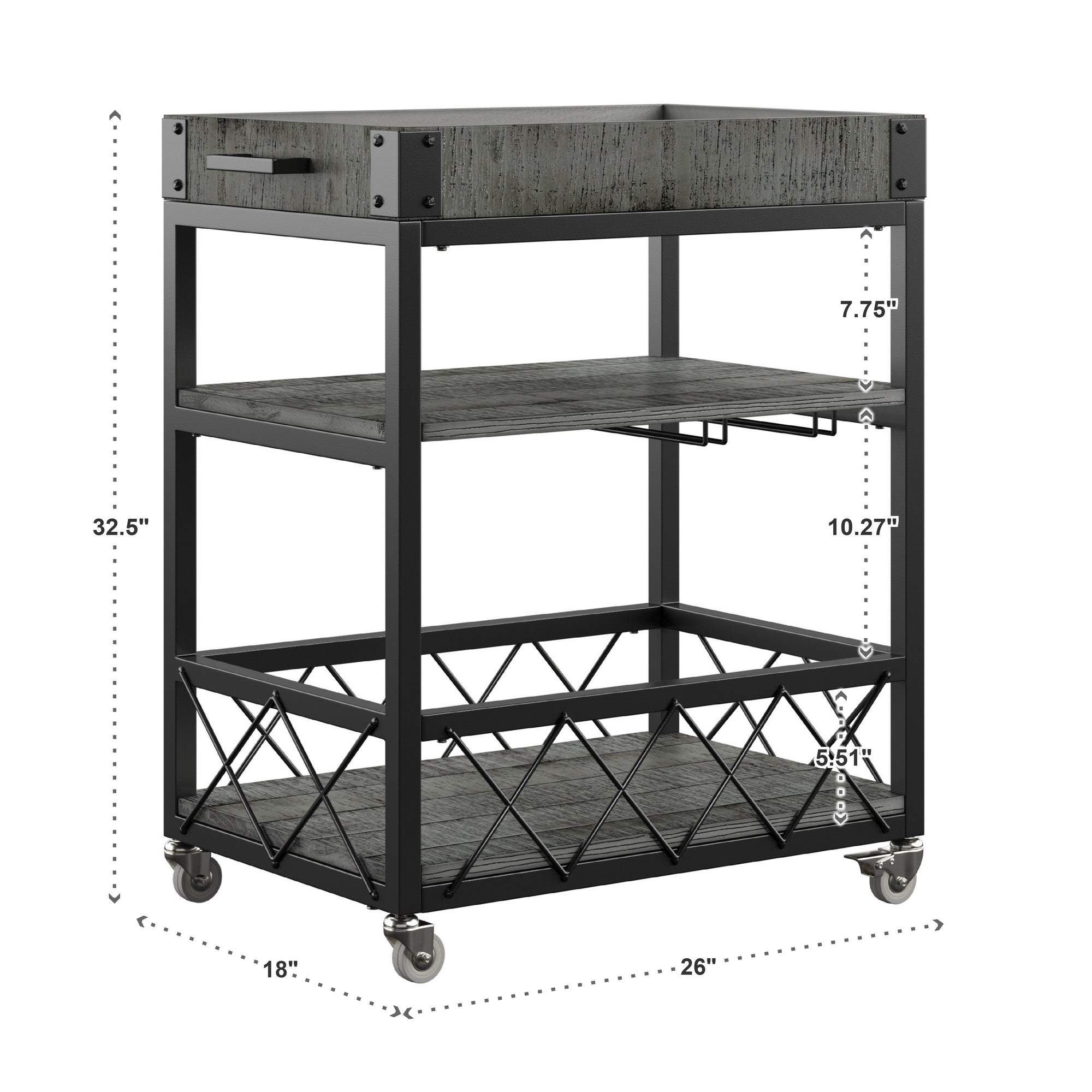 Rustic Serving Cart with Wine Inserts and Removable Tray Top - Gray Finish