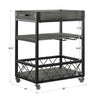 The iNSPIRE Q serving cart features a weathered and timeworn patina, with traces of natural wood and original colors to showing through. The frame is made of black sand metal with three tiers of storage space. The tray top and wine glass inserts make this bar and kitchen serving cart the perfect entertainment piece.