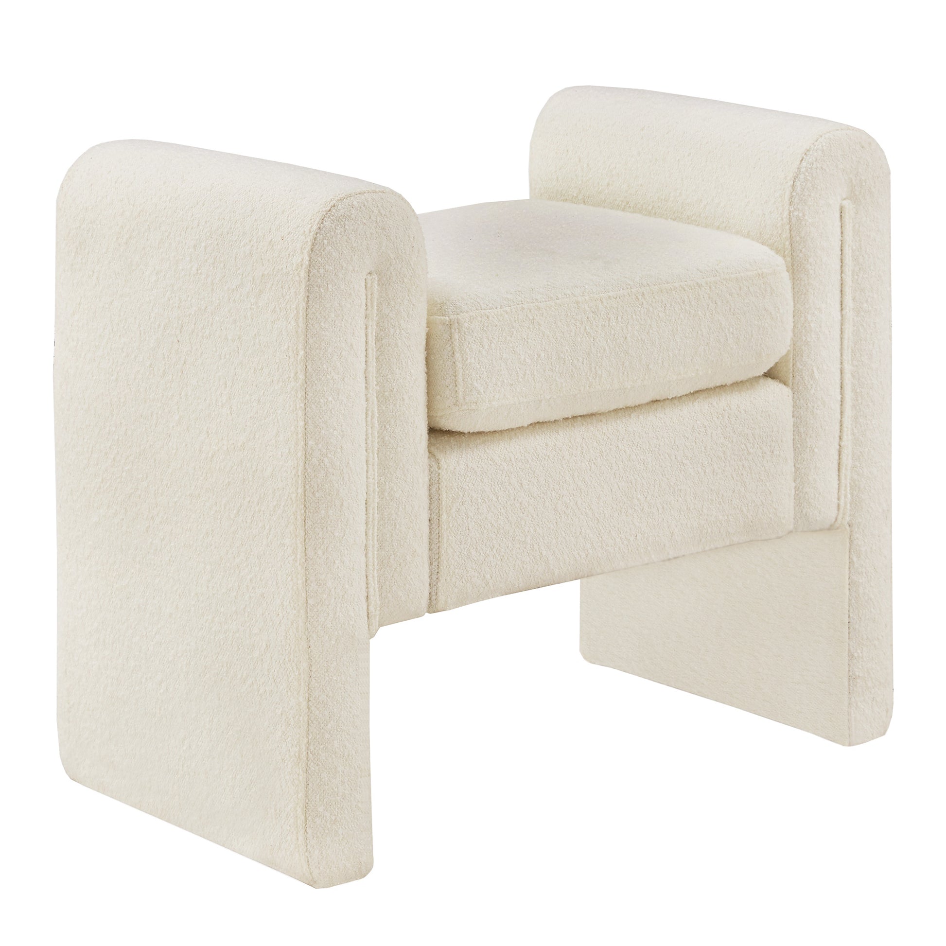 Introducing the modern Ivory White Boucle Bench, the perfect fusion of contemporary design and everyday comfort tailored for the urban lifestyle. Crafted with a sturdy iron tube framework and a solid MDF base, this bench promises endurance and stability. The seat's comfort is amplified by a polyurethane foam pad and enrobed in a layer of soft polyester fiber batting, offering a seating experience that's both indulgent and supportive. Its boucle fabric upholstery is not only on-trend but provides a tactile allure that enhances any room's aesthetic. Designed with curved arms for armrest support, this piece is versatile enough to serve as a chic vanity chair, a welcoming entrance seat, or a functional ottoman. Make a bold statement in your modern living space with this luxurious boucle bench.