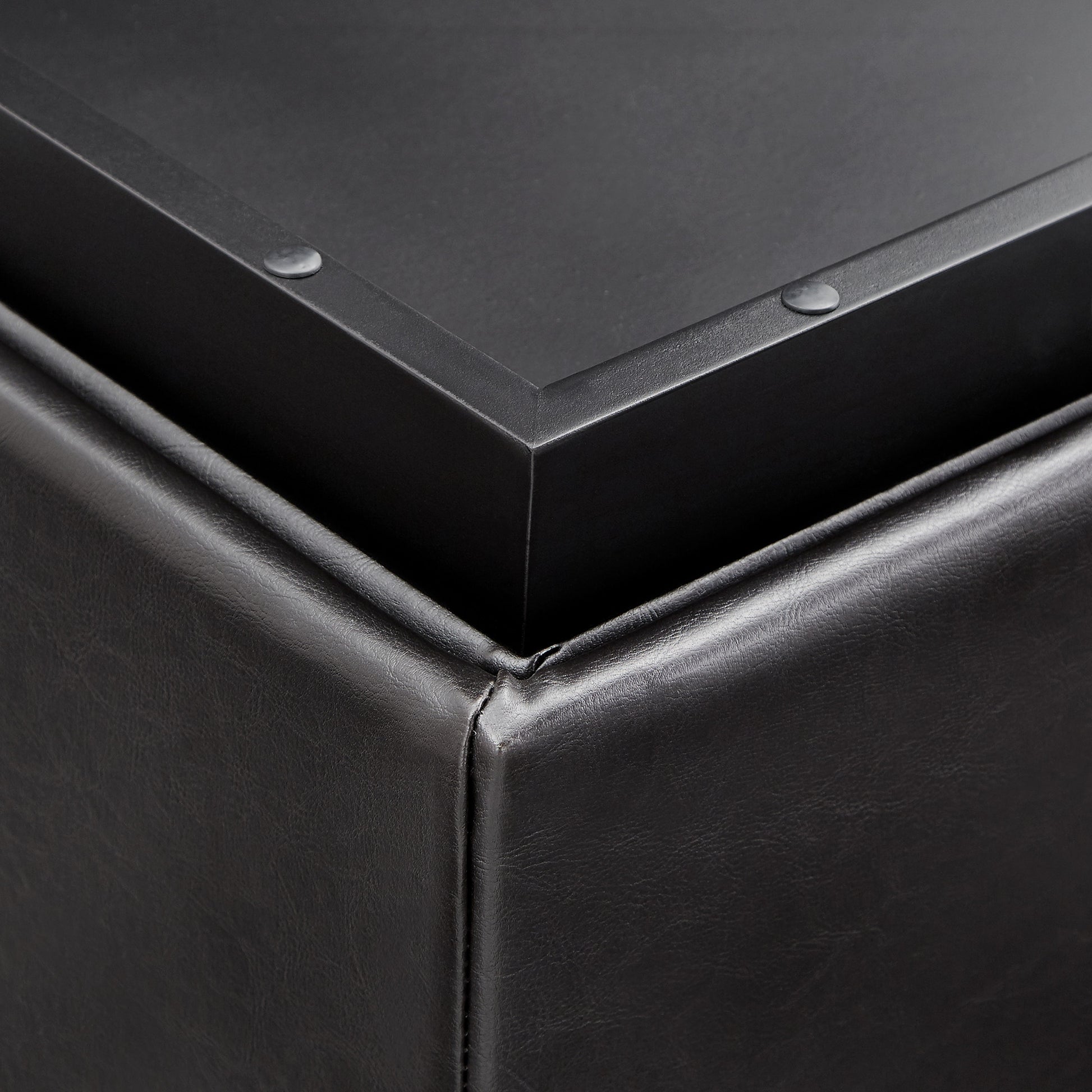 Upholstered Storage Ottoman - Dark Brown Faux Leather