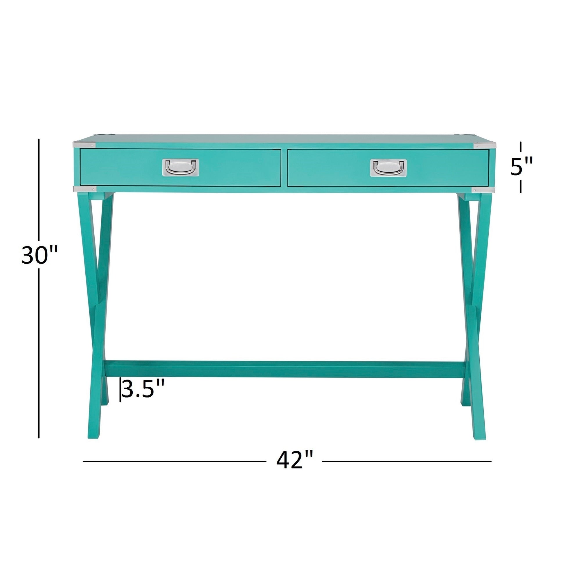 X-Base Wood Accent Campaign Writing Desk - Marine Green