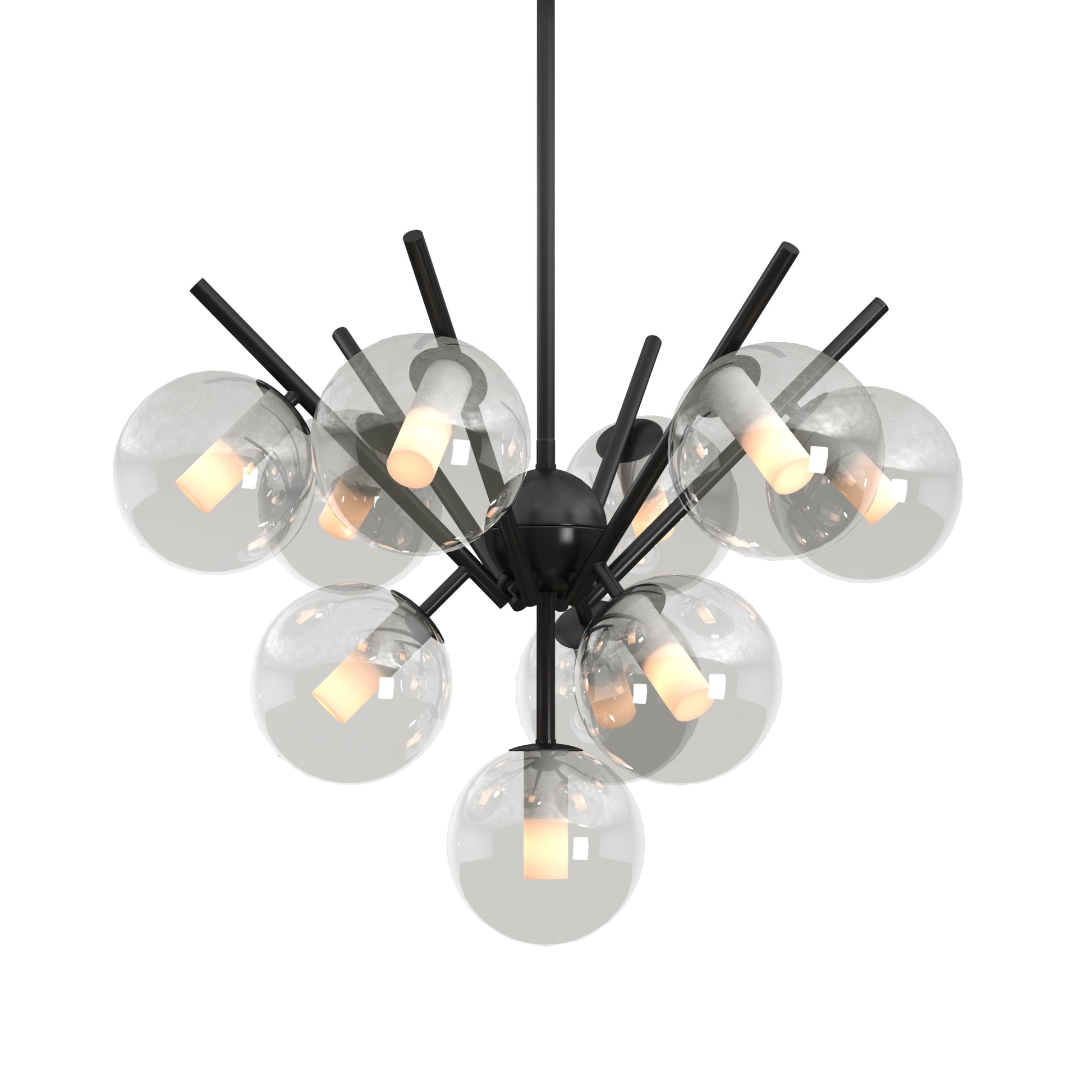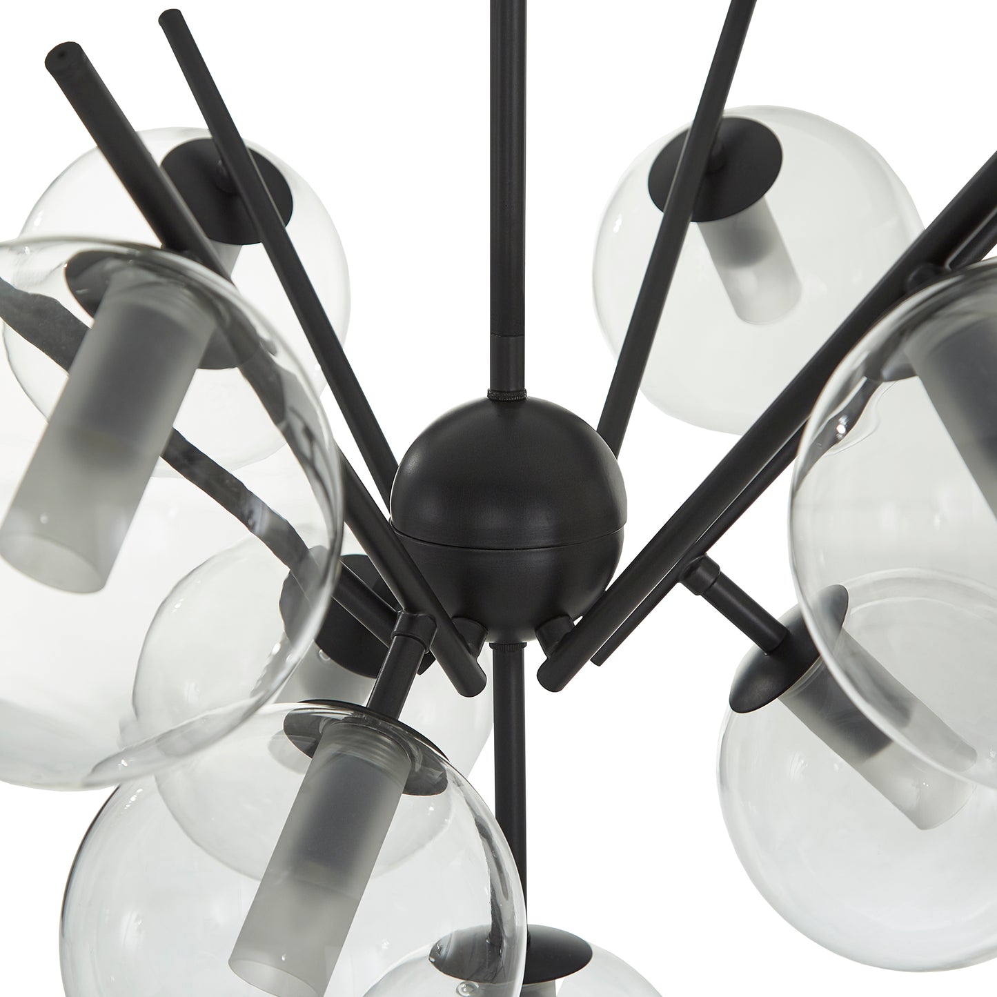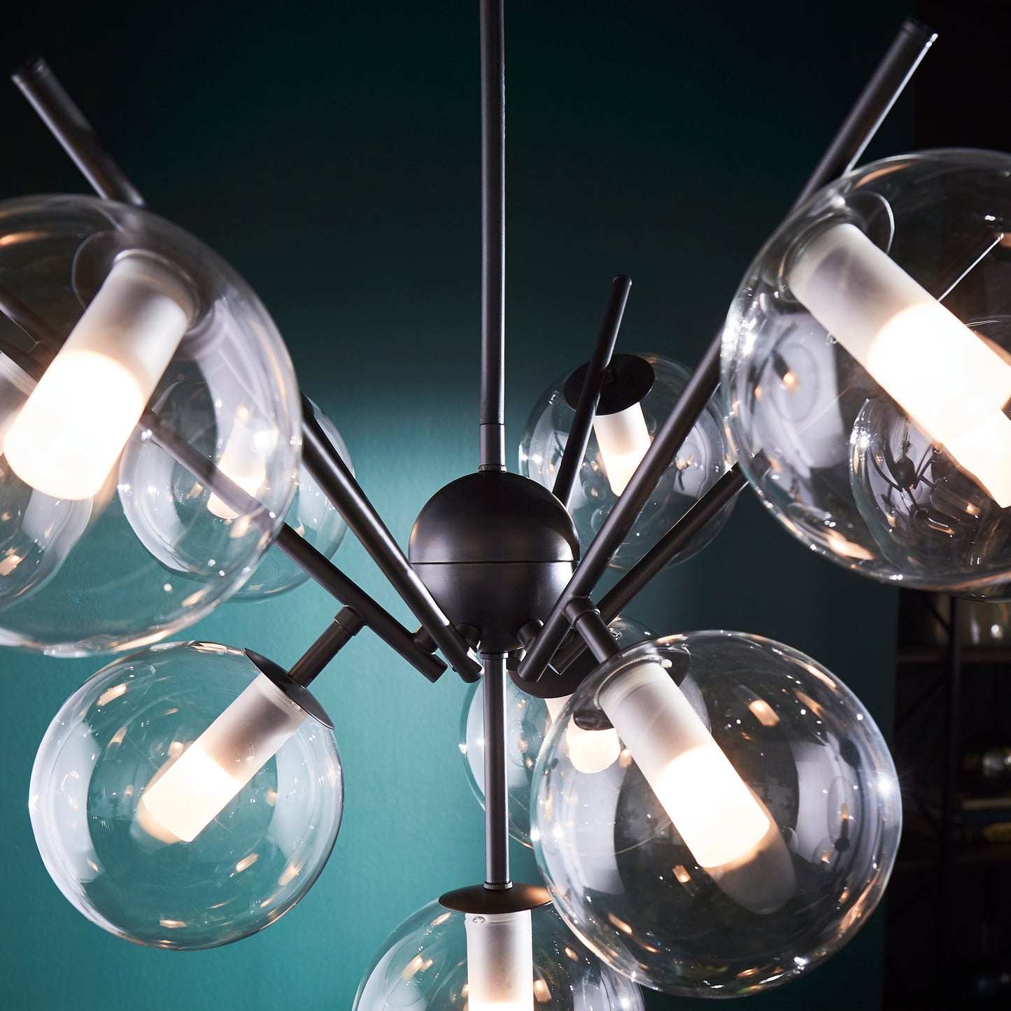 Matte Black Finish Bold 10-Glass Globe Pendant Light