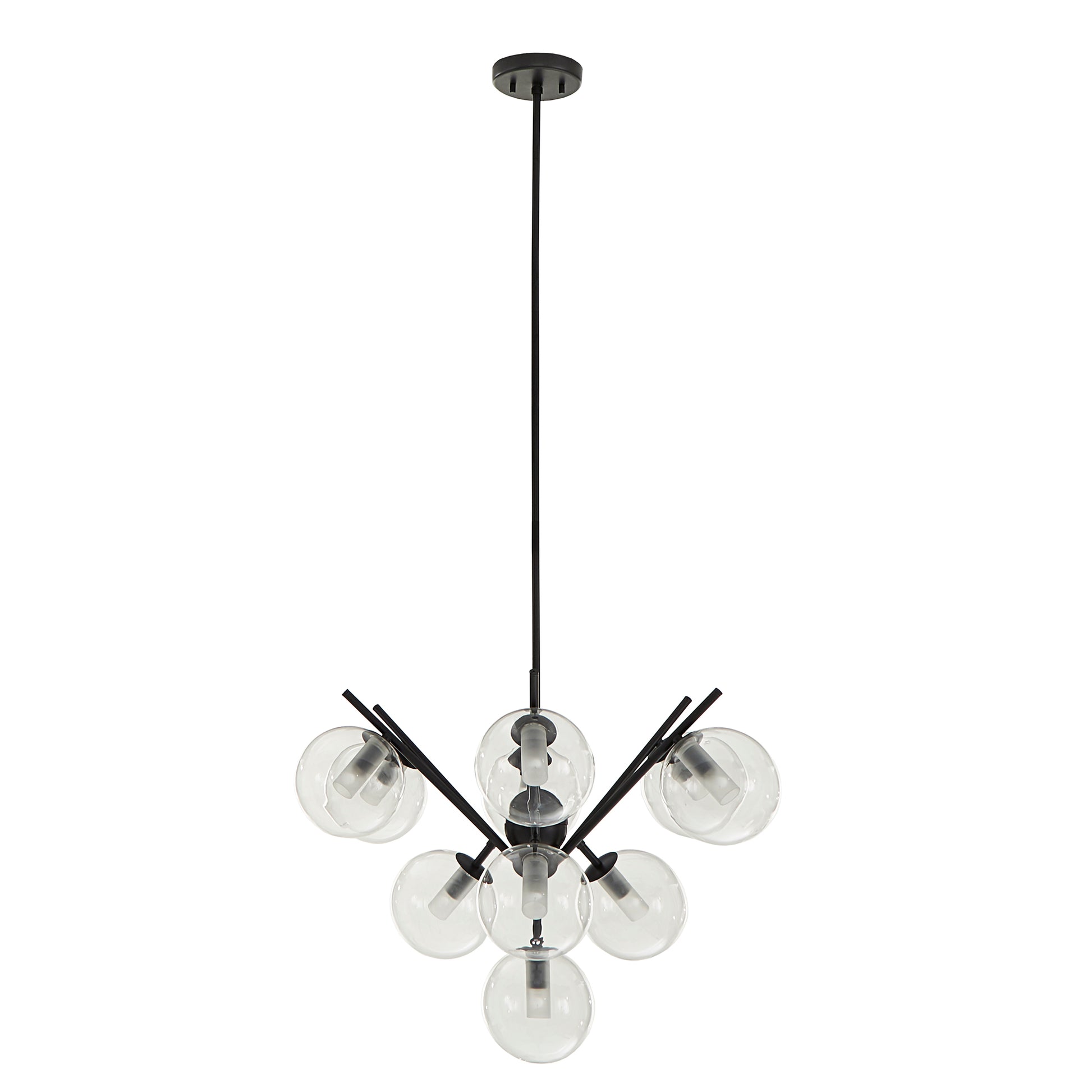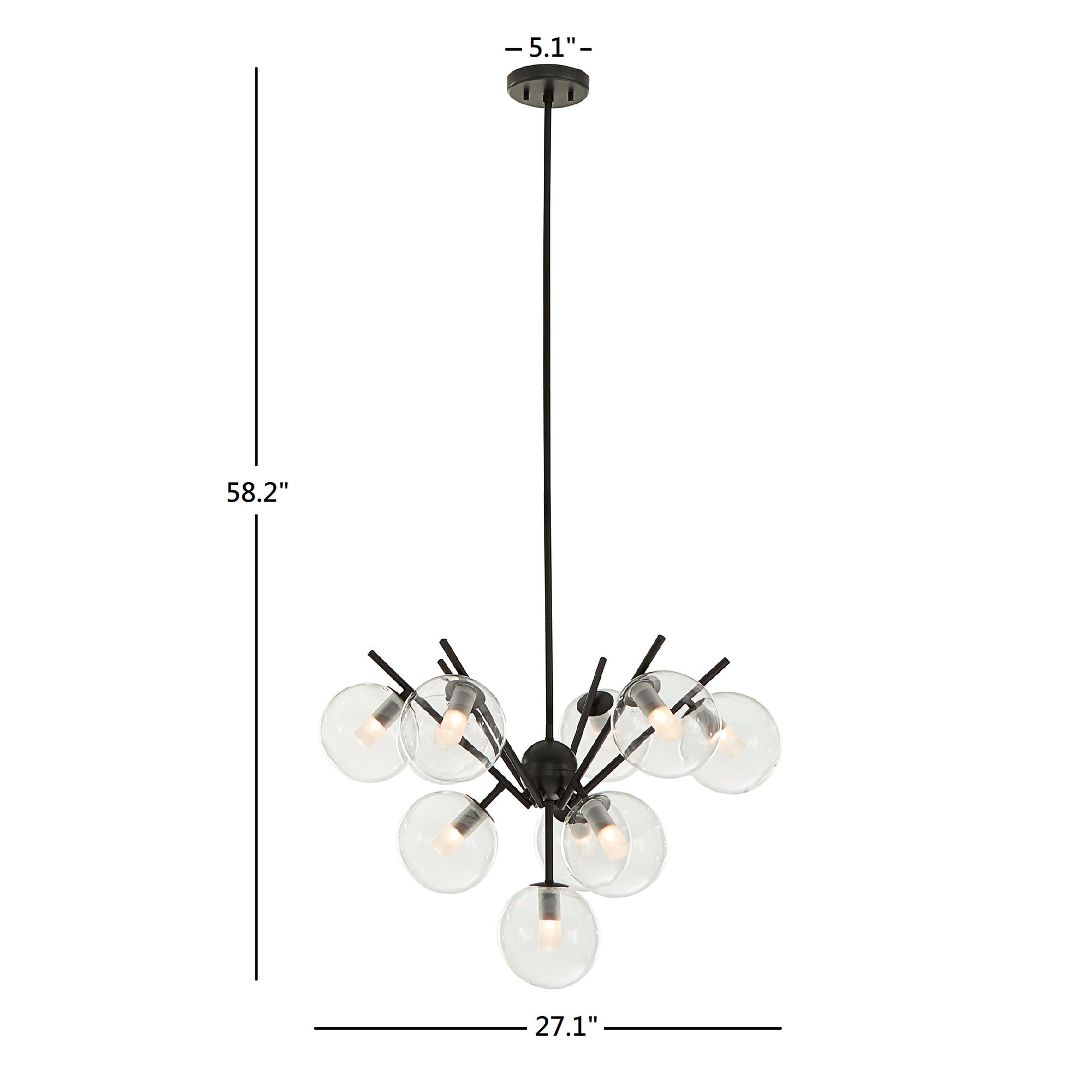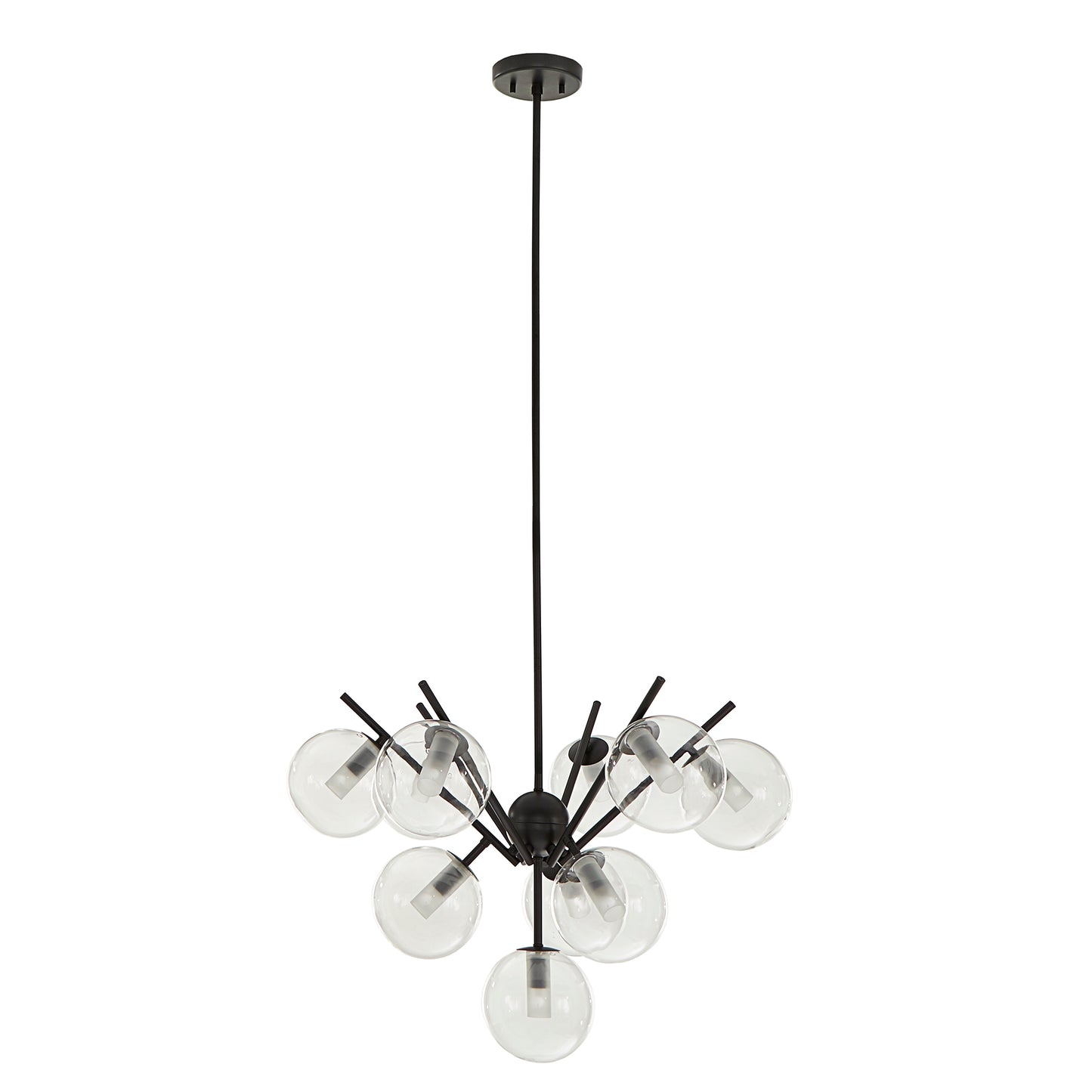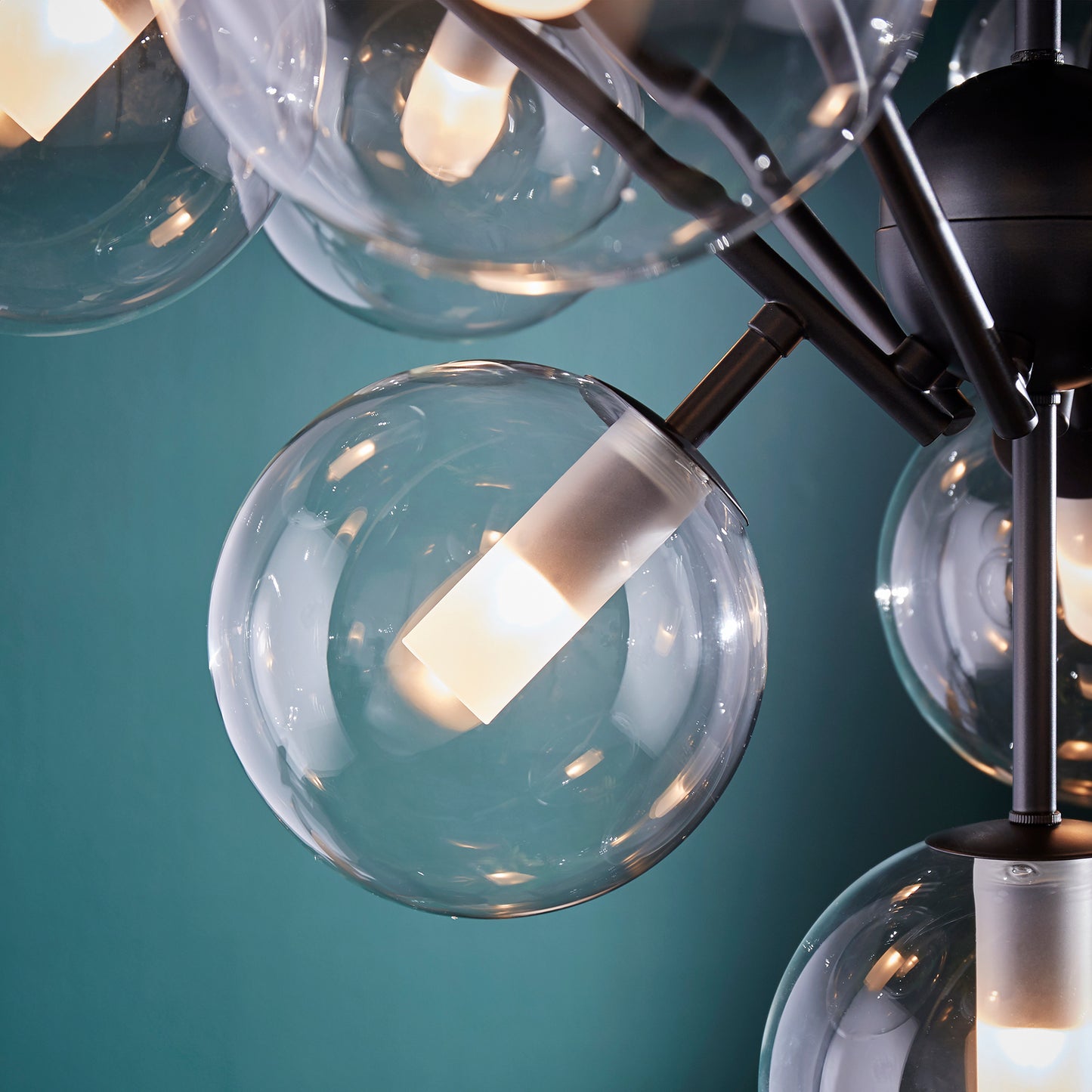 Serving as a simple, final touch to your dining room or living space, the iNSPIRE Q iNSPIRE Q Matte Black Bold 10-Glass Globe Pendant Light provides just the right amount of needed light to illuminate your space. This light conveniently hangs from the ceiling, features a sleek, matte black finish with 10 clear glass globes. This 10 bulb light fixture adds modern beauty to any room in the home and provides the perfect mood lighting for an intimate setting.