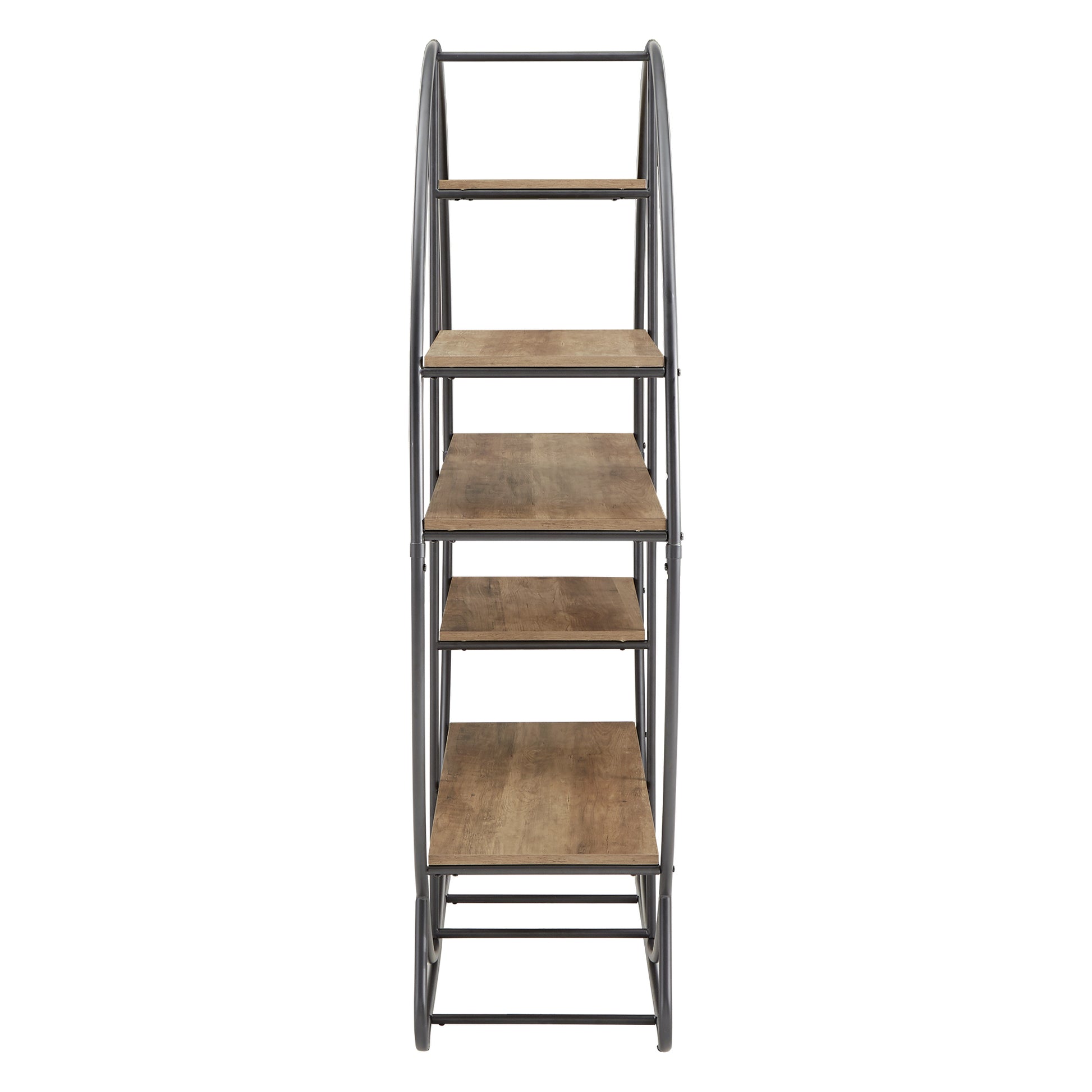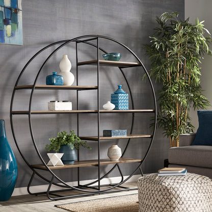 Showcase books and other décor items with the iNSPIRE Q Matte Black Finish Metal Round Bookcase by iNSPIRE Q Modern. Five fixed shelves allow this circular bookcase to organize your belongings (large or small!) in a functional and stylish way. The open frame of this contemporary piece allows you to effortlessly style items without the worry of sizing concerns. while maintaining a contemporary look. Constructed of stylish matte black metal, this durable bookcase is sure to complement modern styled homes.