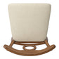 - Features a padded seat, beige fabric upholstery, and footrest for added comfort