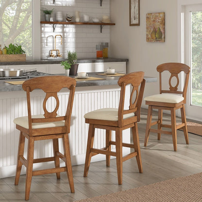 Napoleon Back Wood Swivel Bar Stool - Oak Finish