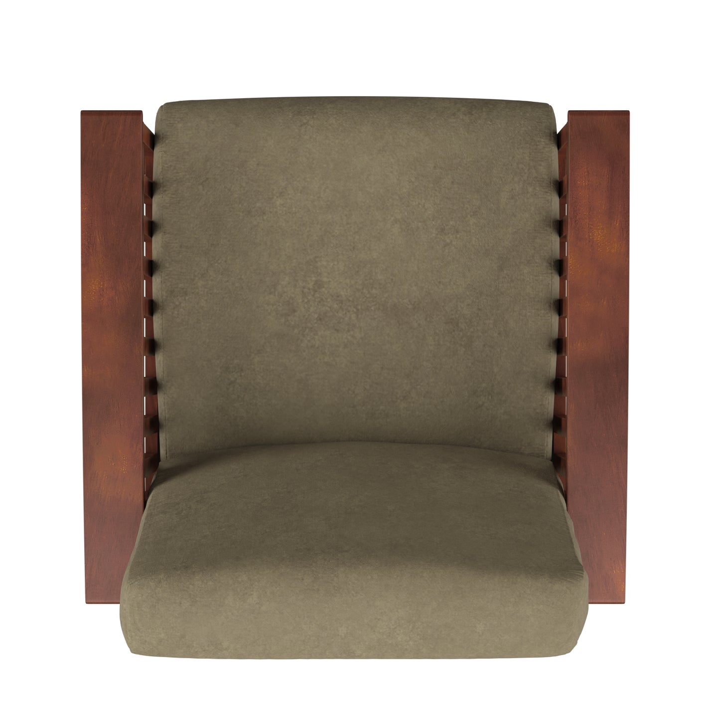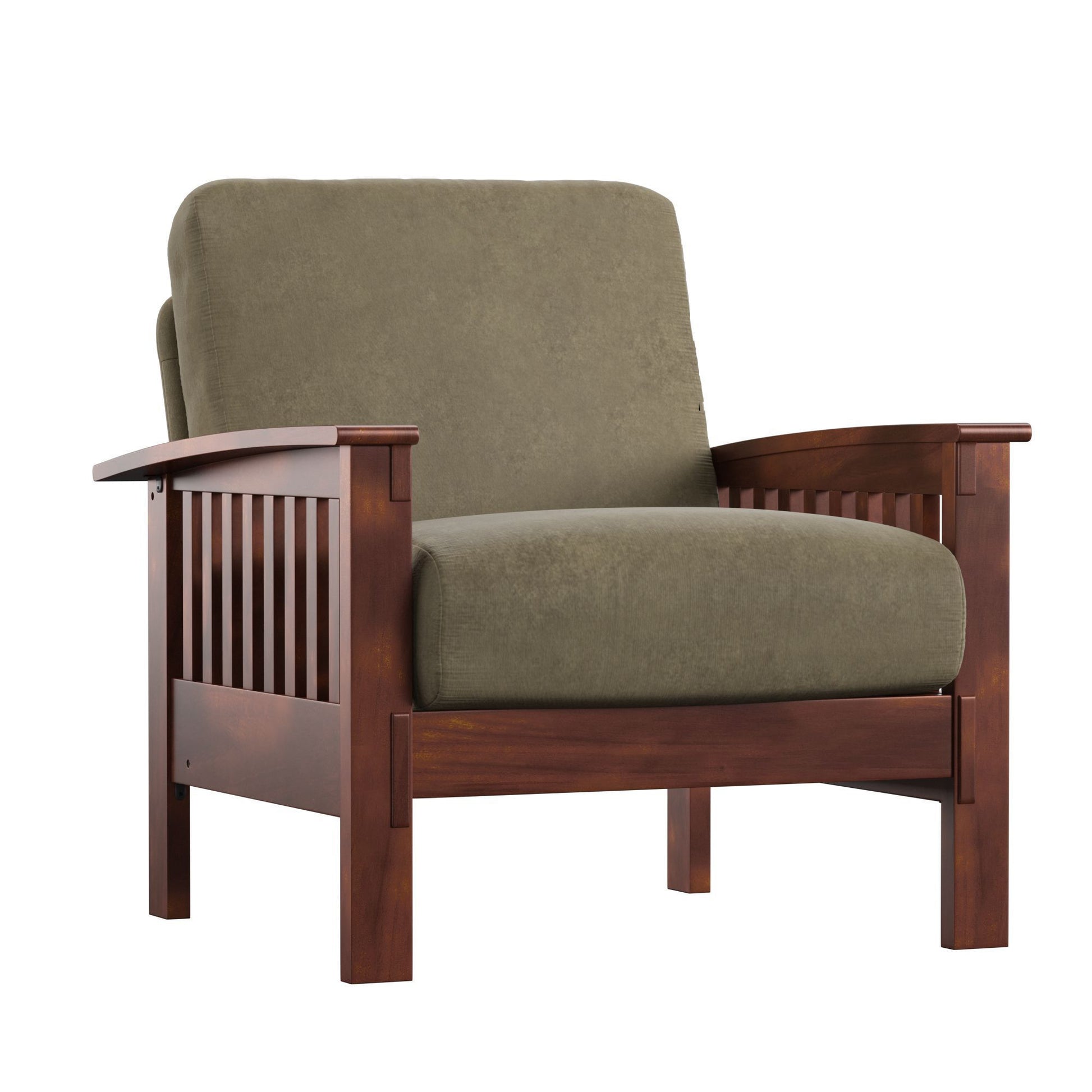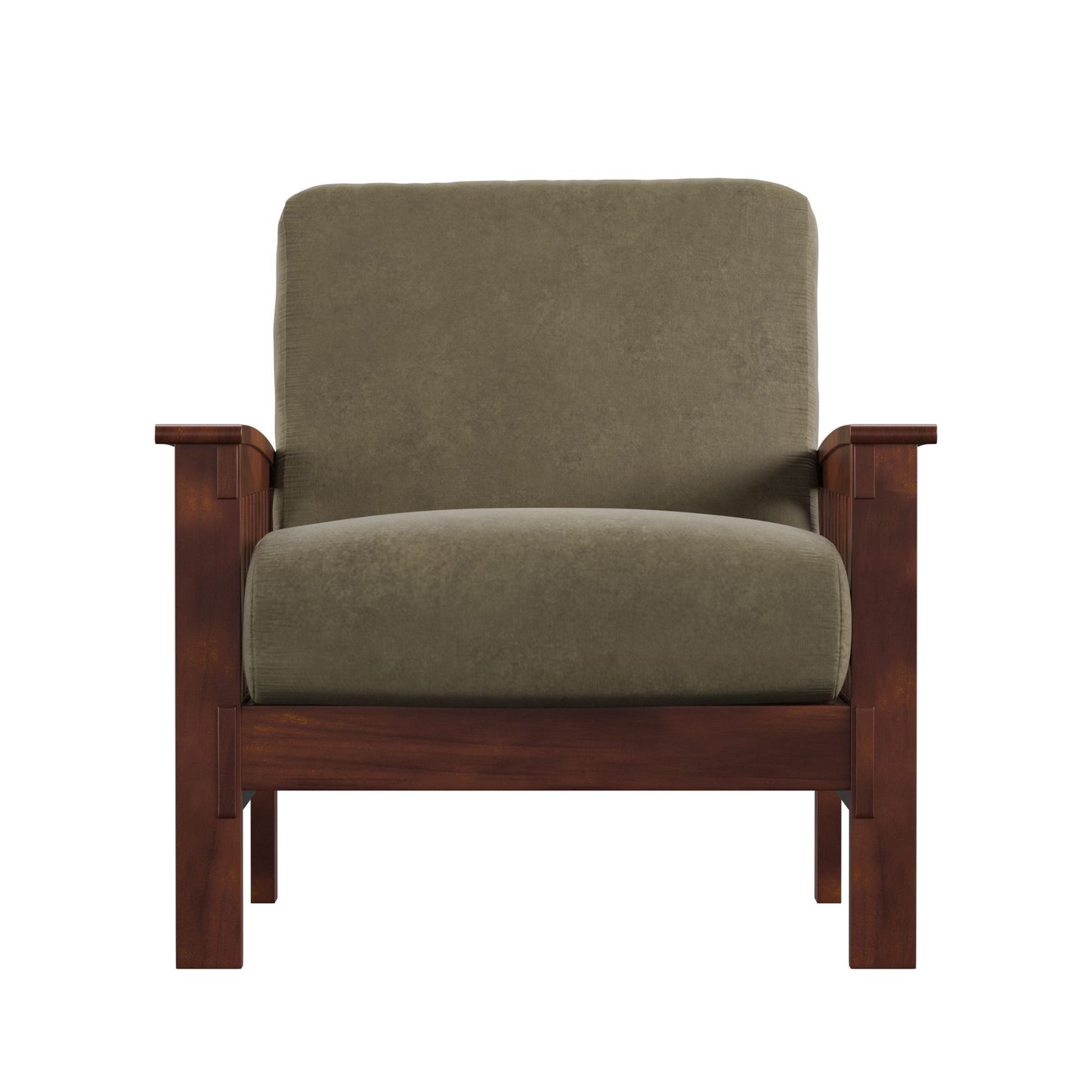 Mission-Style Wood Accent Chair - Olive Microfiber, Oak Finish