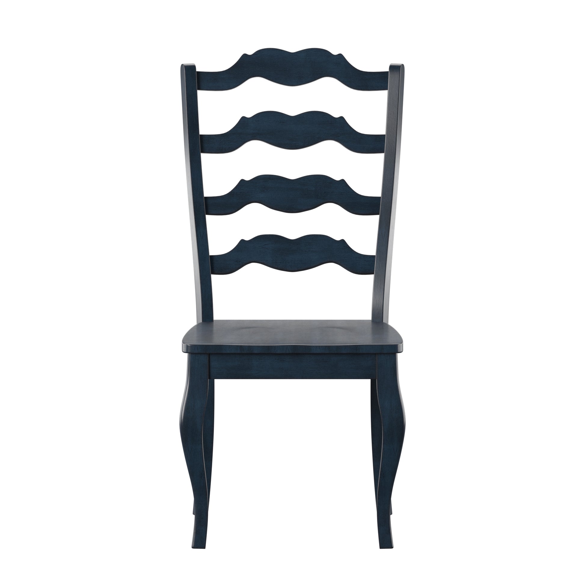 French Ladder Back Wood Dining Chairs (Set of 2) - Antique Dark Denim Blue