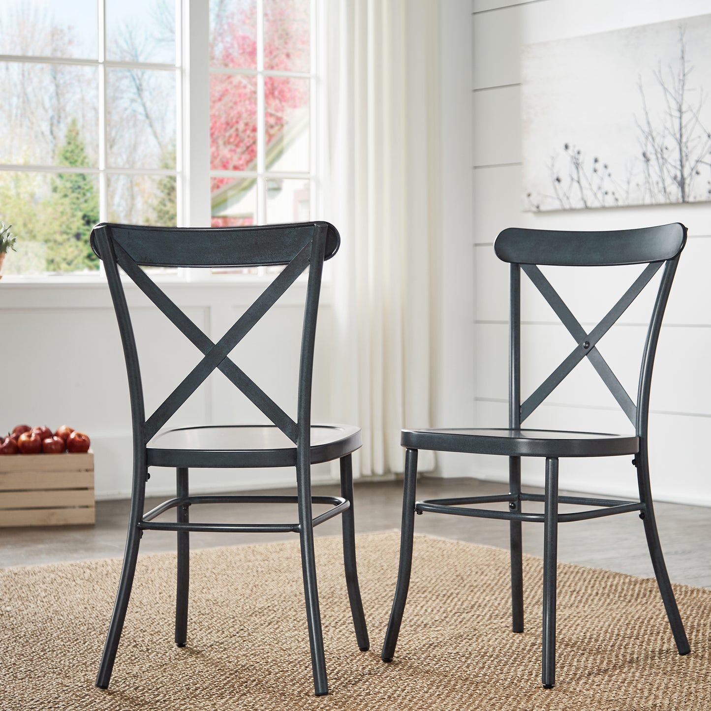Bringing classic style and a streamlined design to your home, the iNSPIRE Q iNSPIRE Q metal dining chairs pair well with almost any setting. These lightweight chairs are constructed of metal but display the appearance of a rustic wood finish and feature an X-cross chair back design which looks great when placed in a traditional or farmhouse styled setting. With a contoured seat these chairs are comfortable and work for any casual dining space.