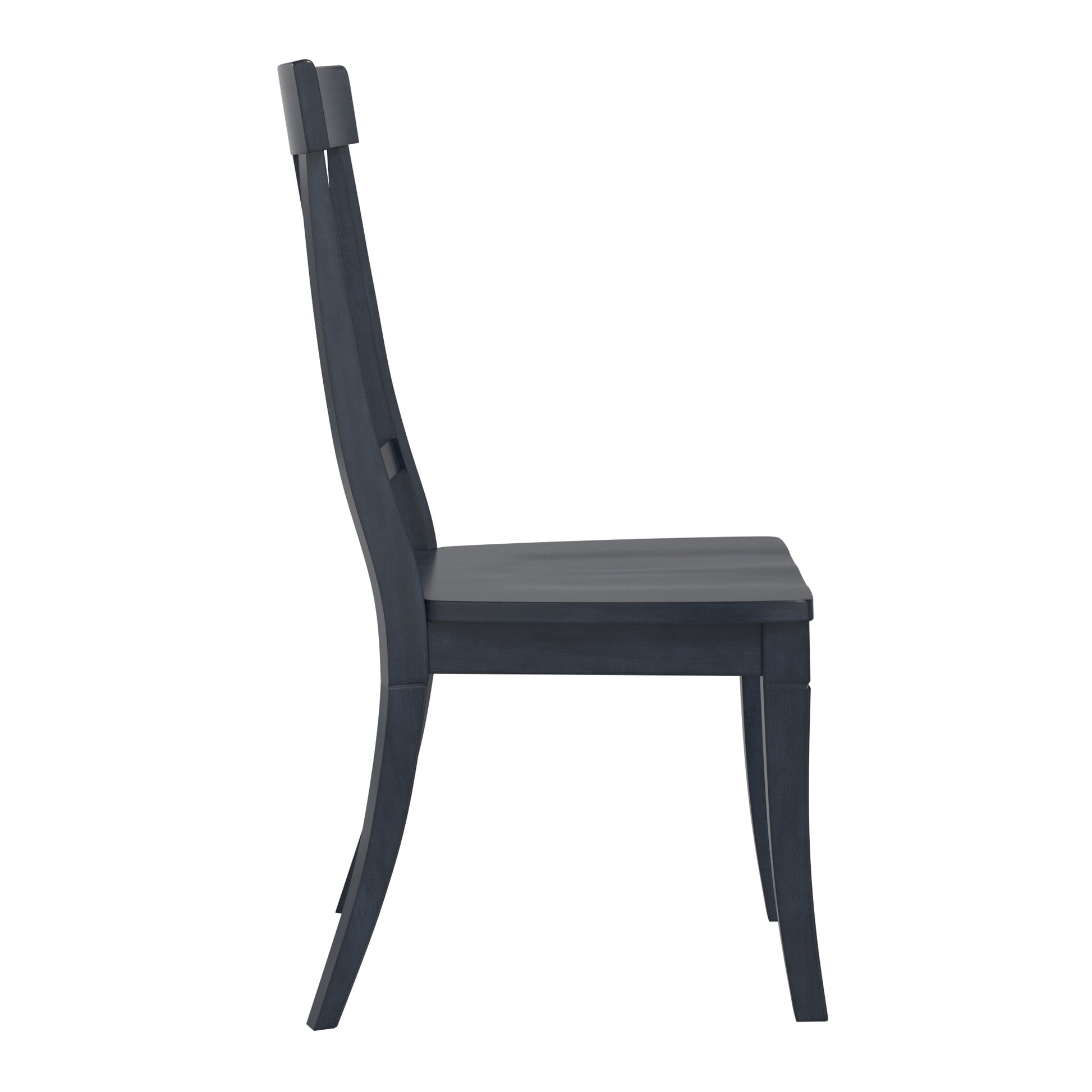 Panel Back Wood Dining Chairs (Set of 2) - Antique Dark Denim Blue Finish