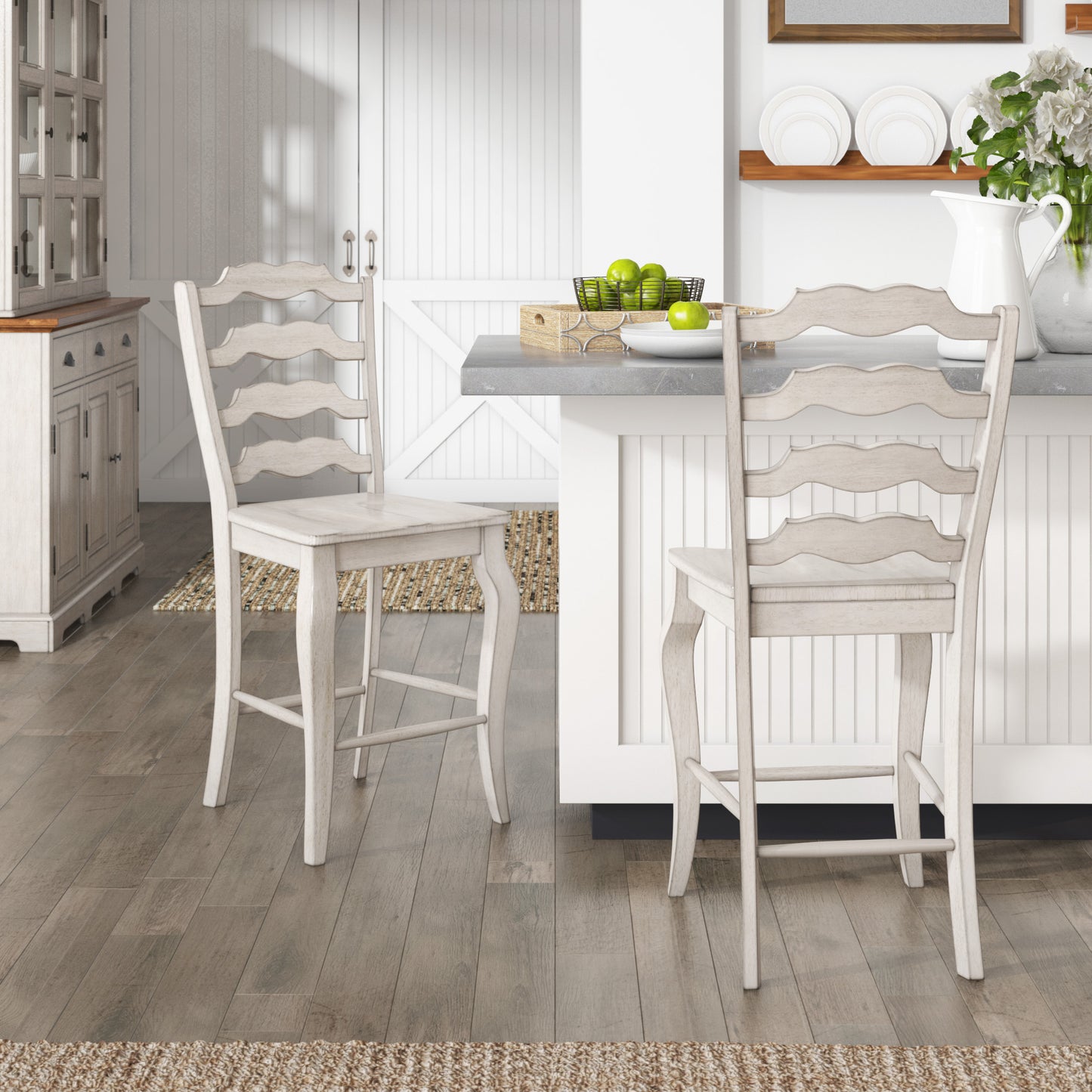 French Ladder Back Wood Counter Height Chairs (Set of 2) - Antique White