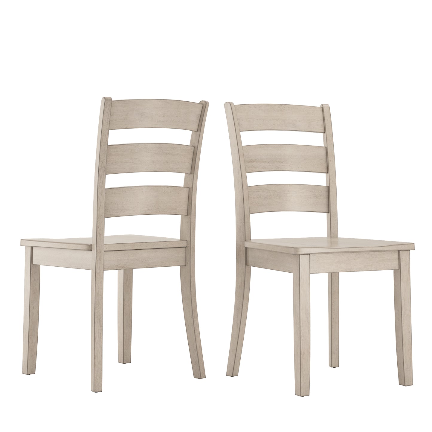 Ladder Back Wood Dining Chairs (Set of 2) - Antique White Finish
