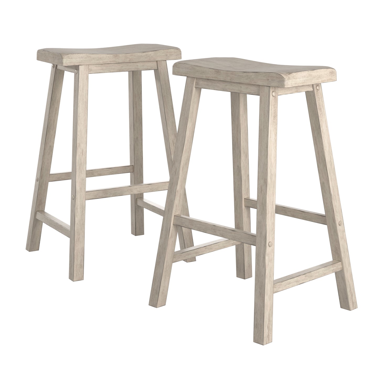 Saddle Seat 29" Bar Height Backless Stools (Set of 2) - Anique White Finish