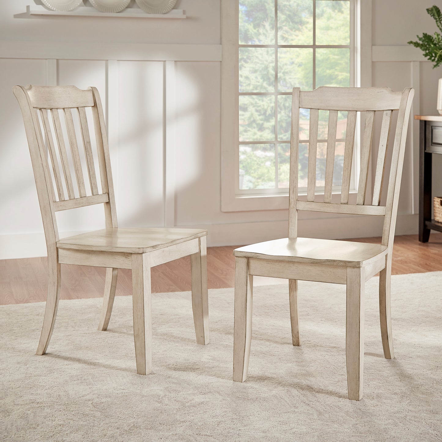 Slat Back Wood Dining Chairs (Set of 2) - Antique White Finish