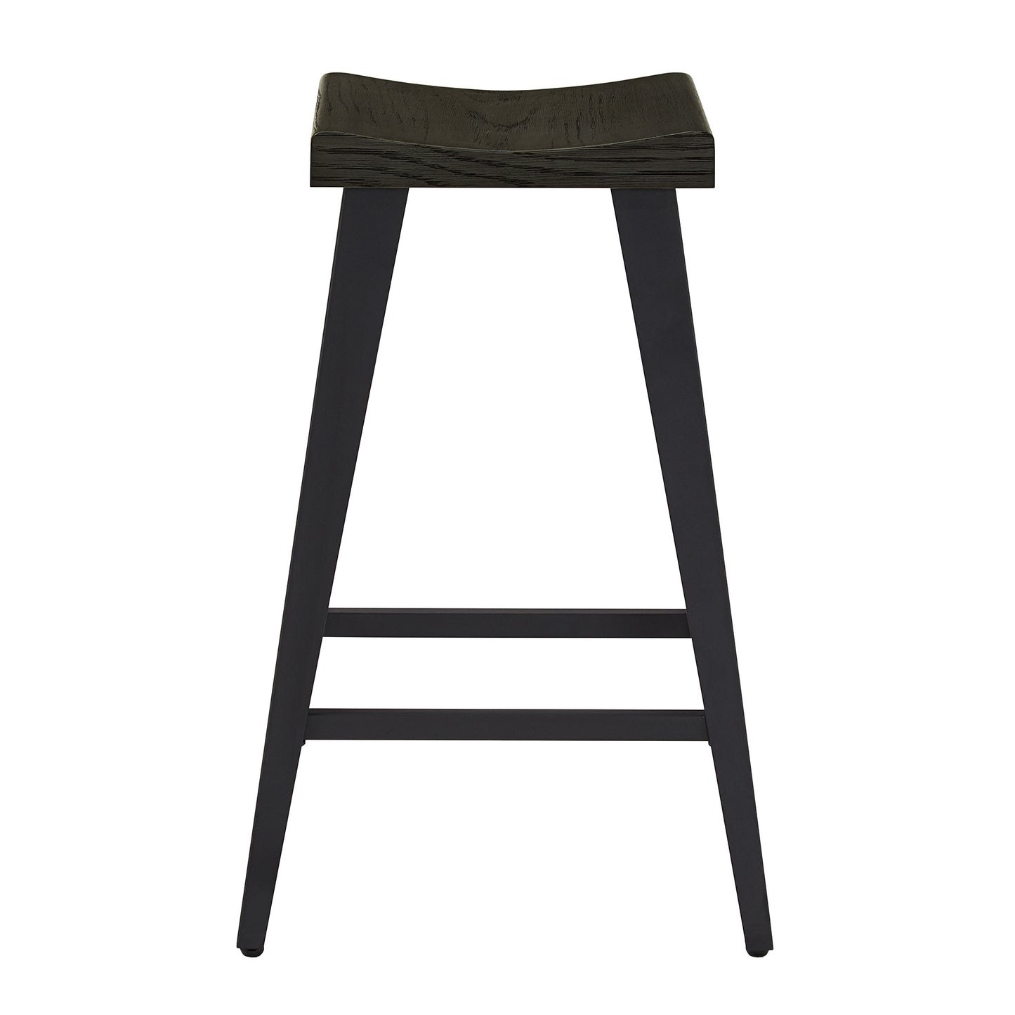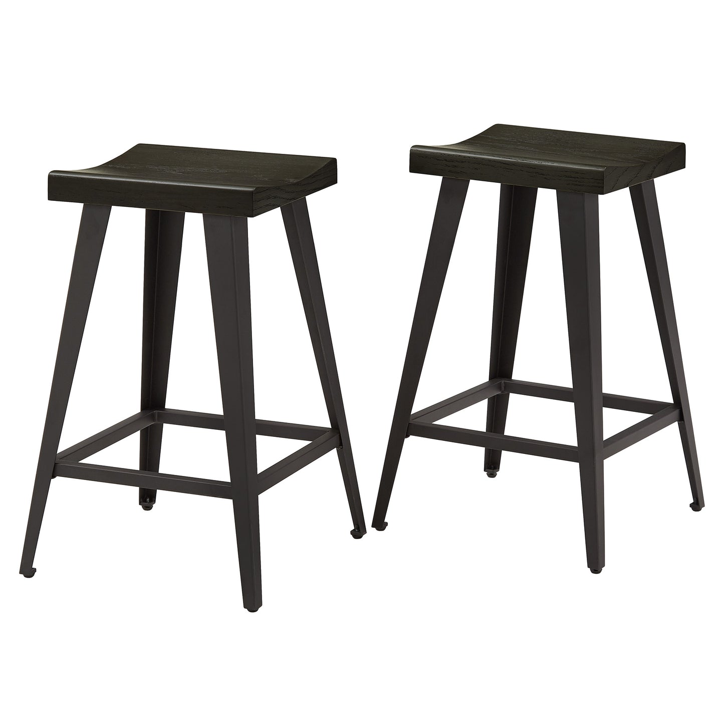 Discover the perfect blend of functionality and opulence with our Modern Lux Black Counter Stools. Each stool in this set of two boasts a robust iron frame coupled with a premium oak veneer surface over engineered wood. Standing at an ideal counter height of 24 inches, these stools feature a contoured seat designed for maximum comfort. They are a stylish addition to any contemporary dining room or urban space, offering a smart space-saving solution without compromising on luxury.