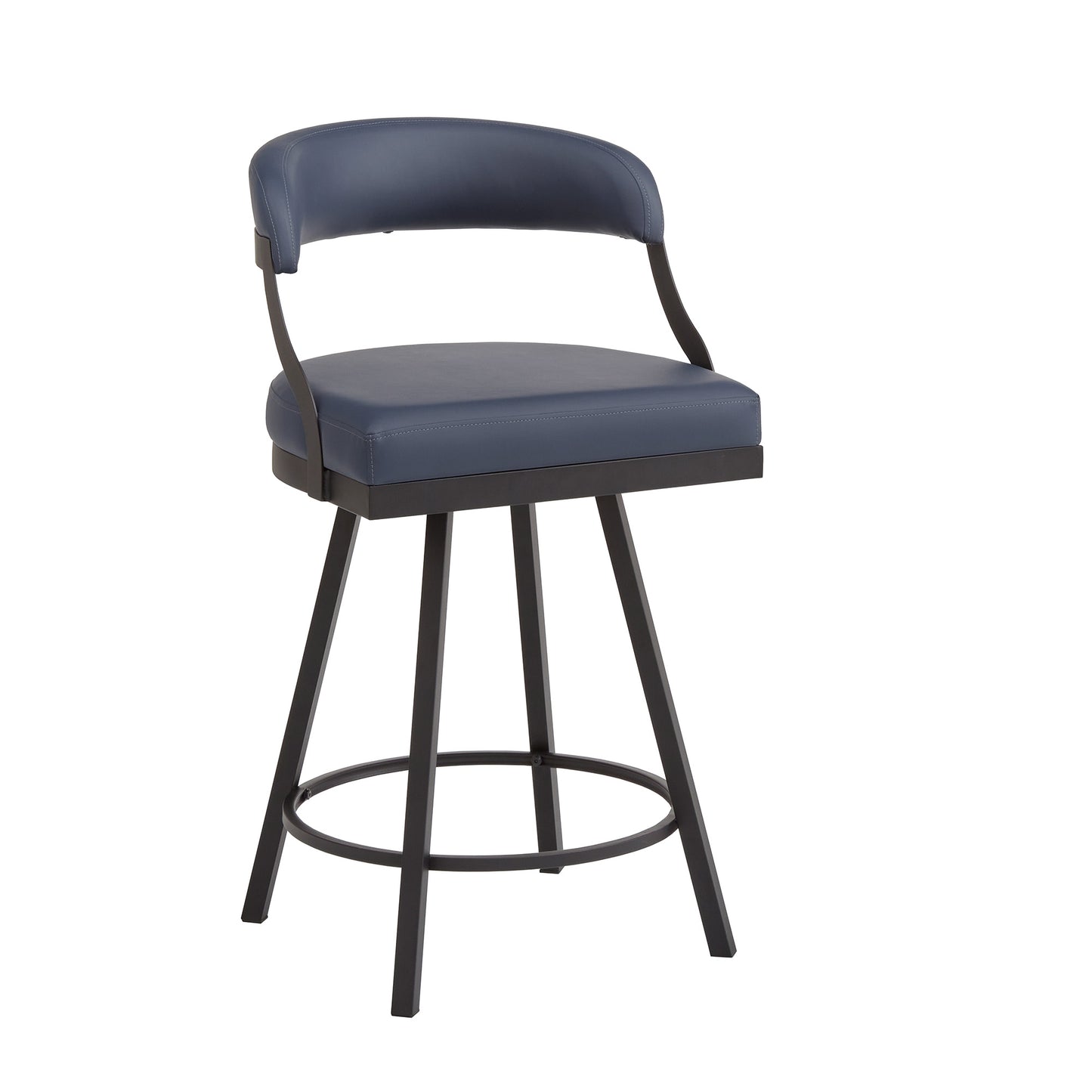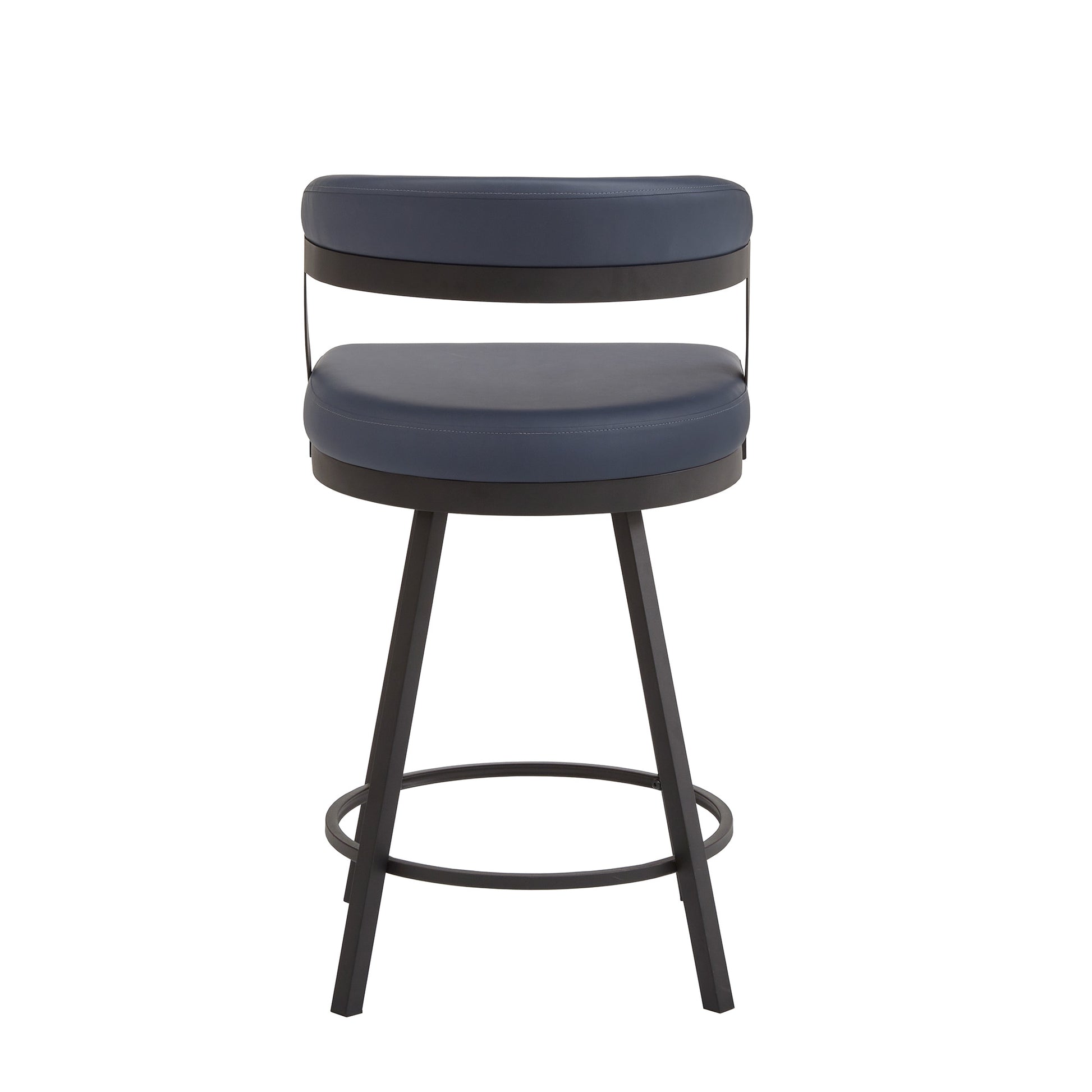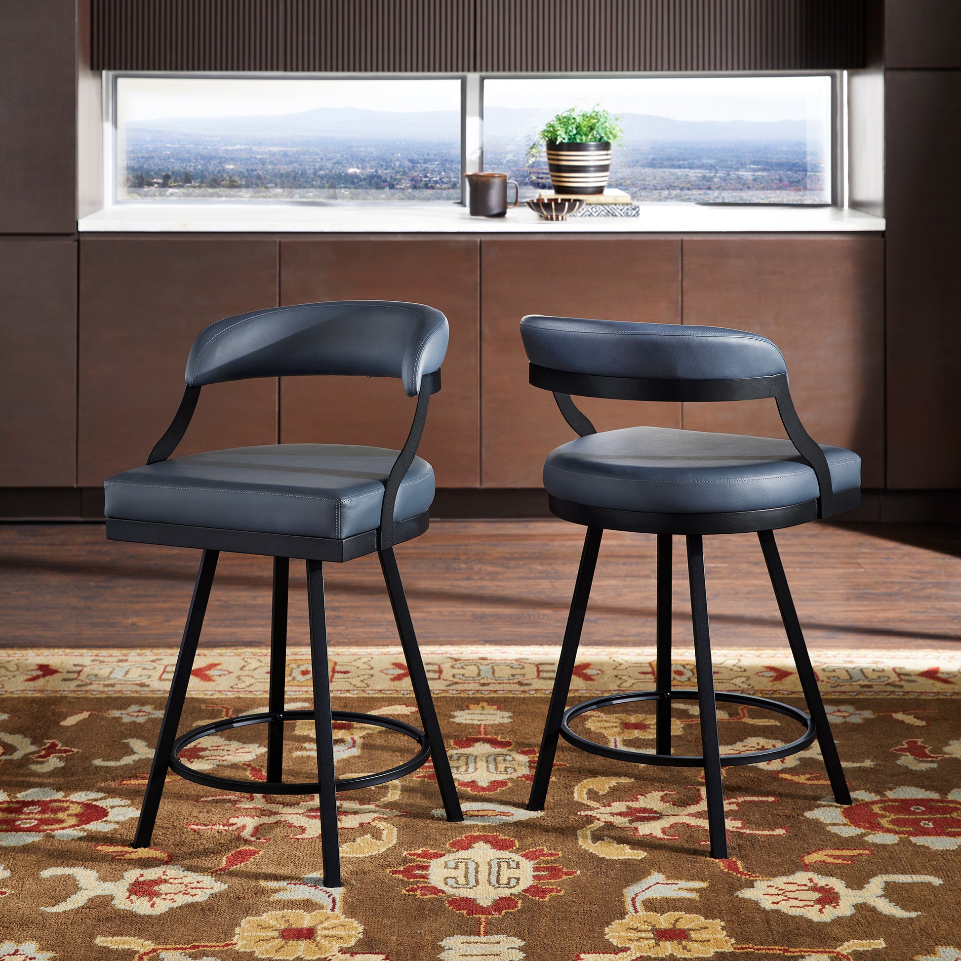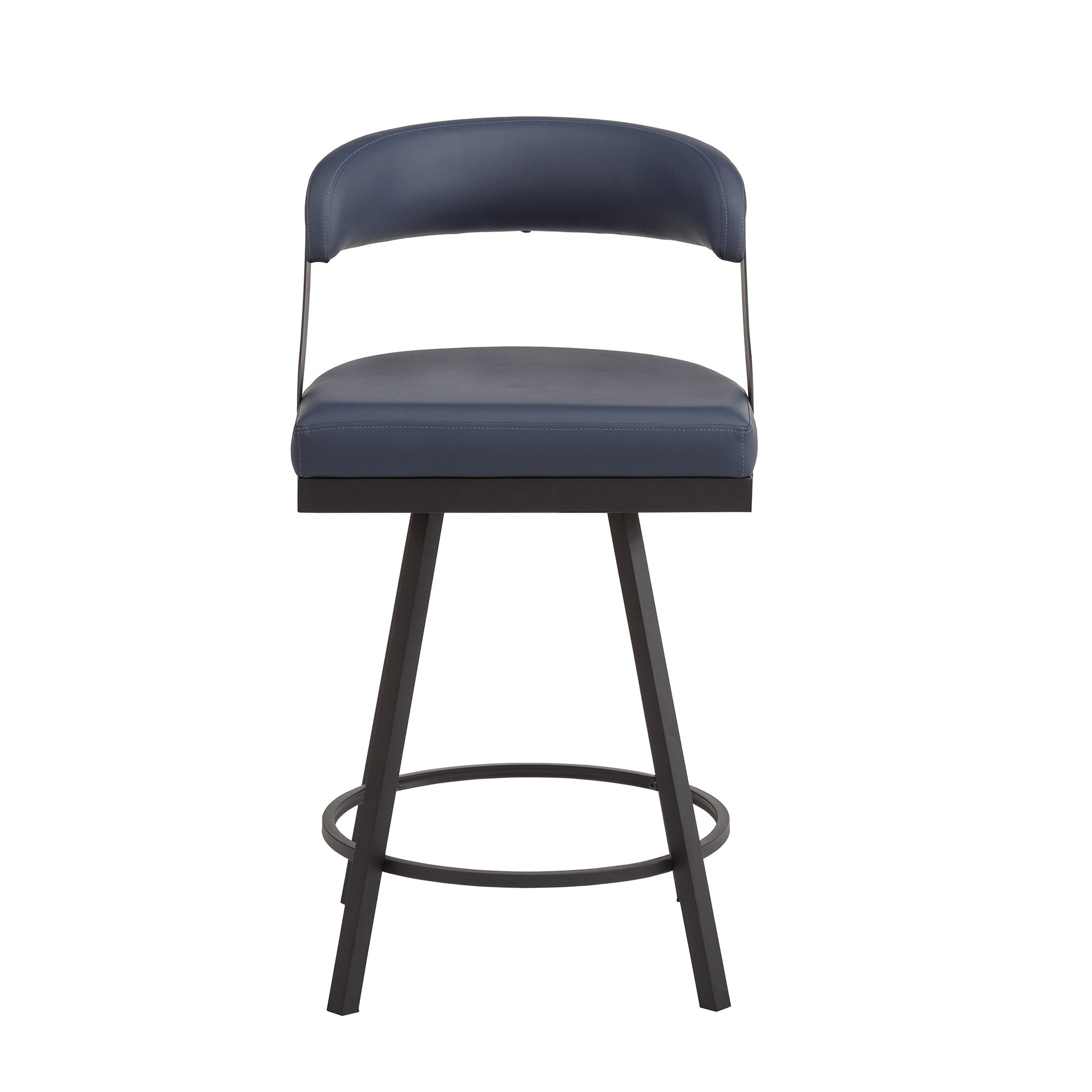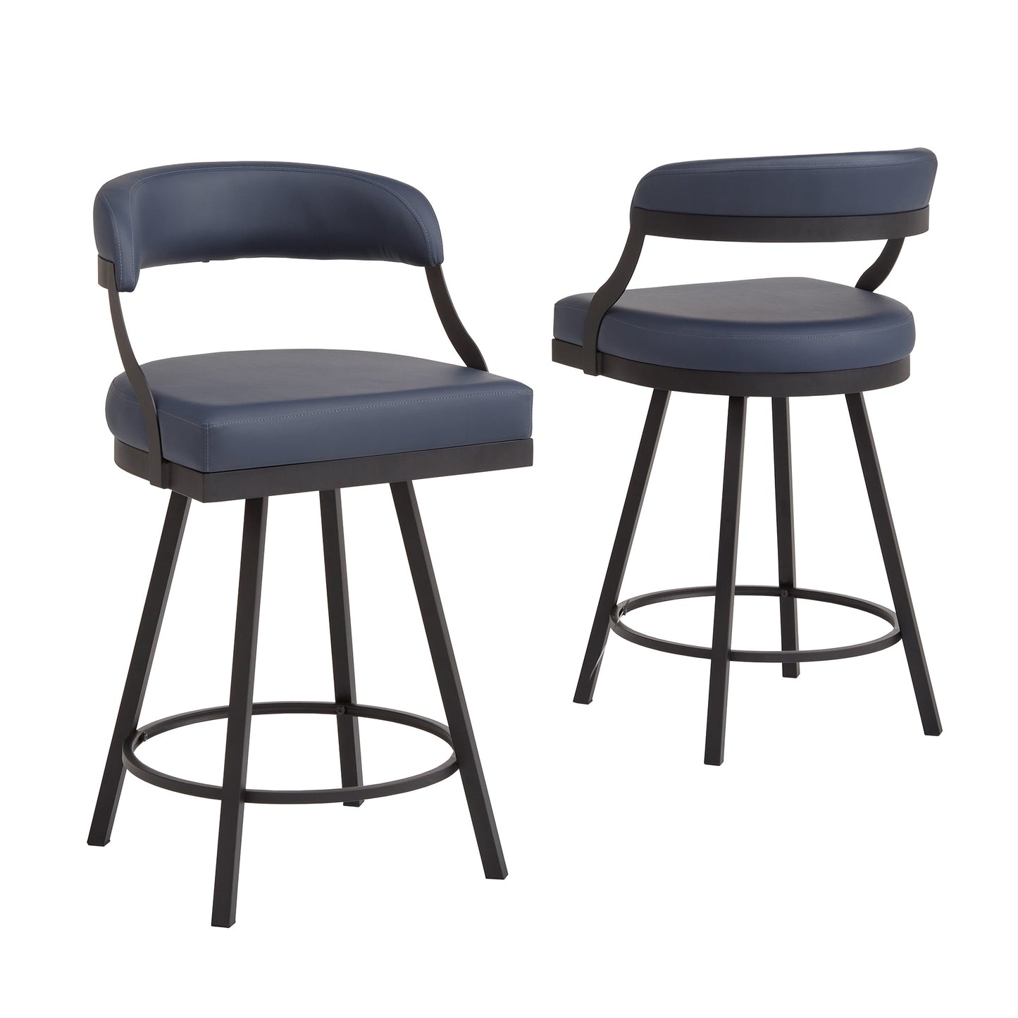 Black Finish Metal Vegan Leather Swivel Chair (Set of 2) - 24 in. Counter Height, Blue