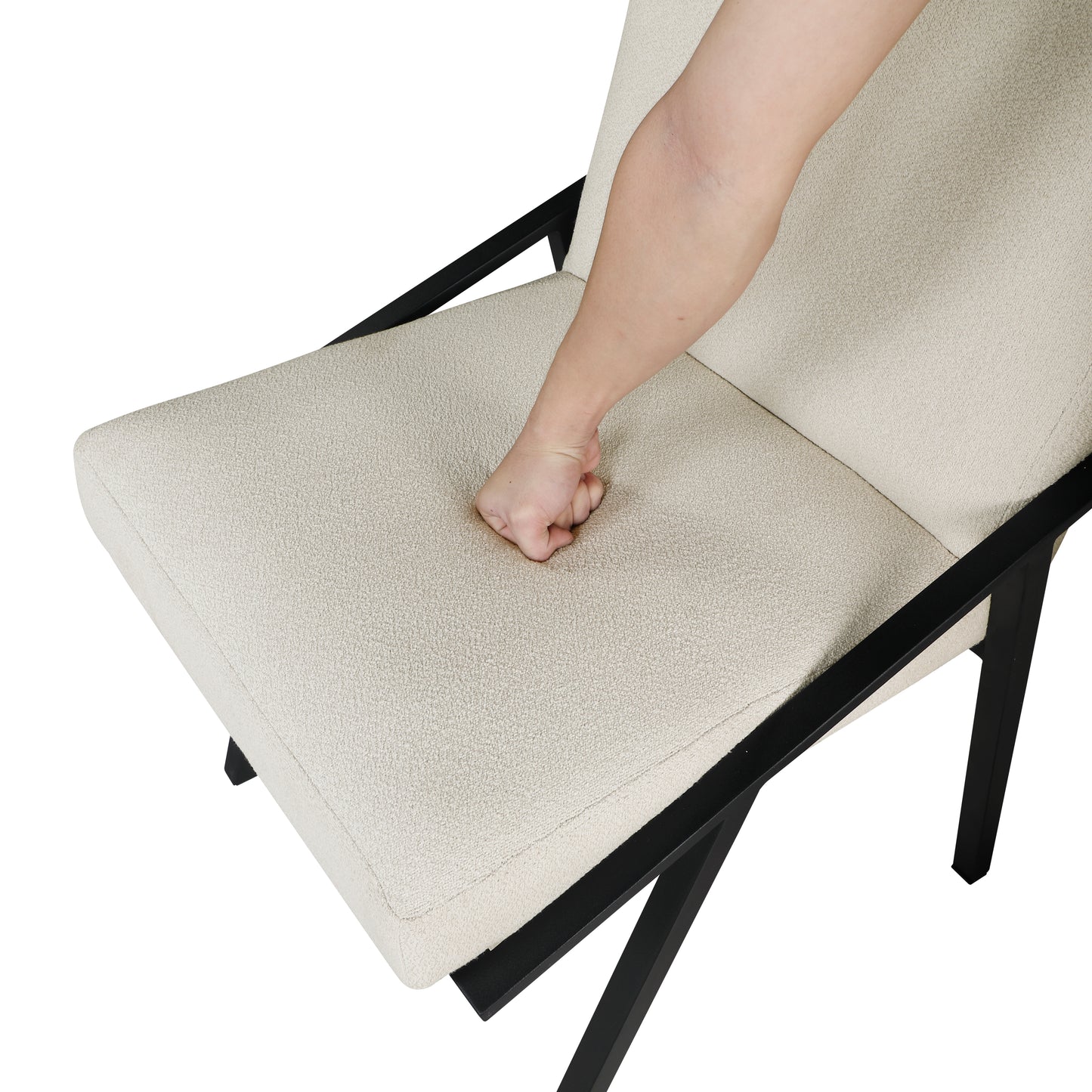 Add a contemporary edge to your dining area with the Black Finish Metal Ivory Fabric Dining Chair (Set of 2). The sturdy black iron frame, paired with smooth ivory fabric upholstery, makes these chairs a stylish yet practical addition to your home. The sleek design with slanted arms and splayed legs brings a fresh, modern aesthetic that fits seamlessly into urban or minimalist decors. Crafted for both comfort and durability, these chairs feature plush cushioning that makes them perfect for long meals or entertaining guests.