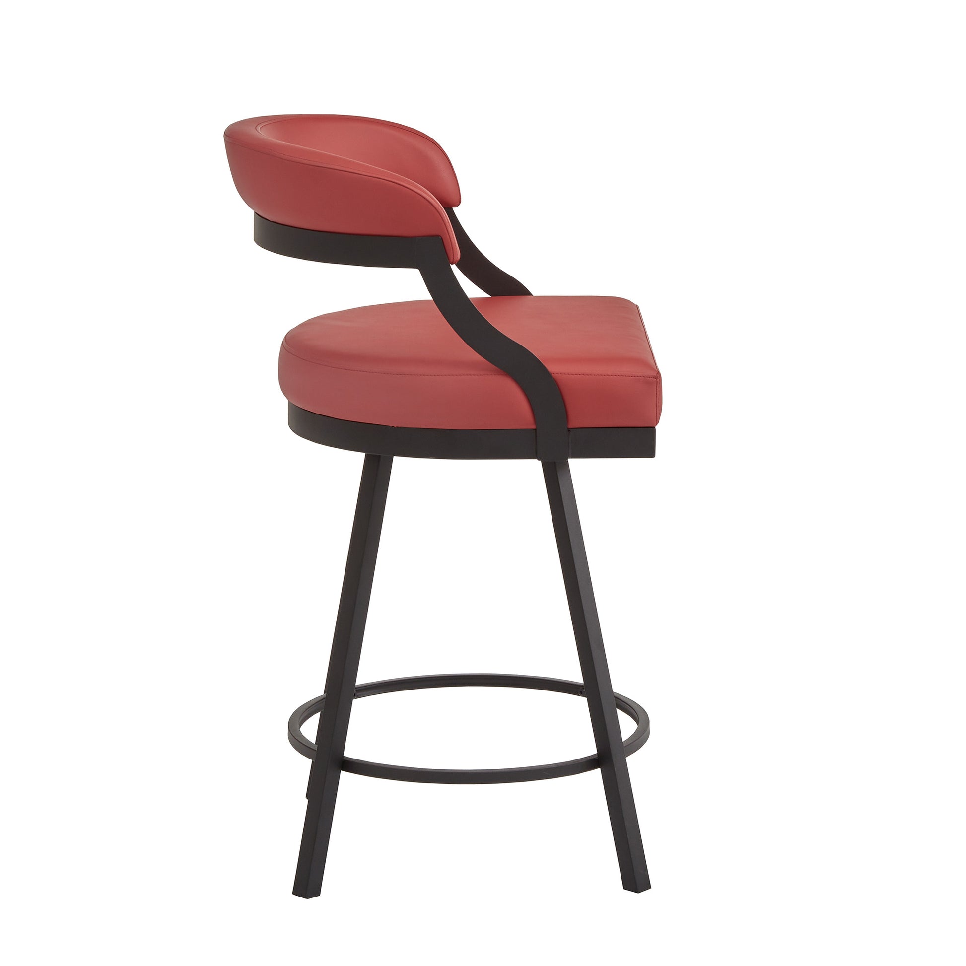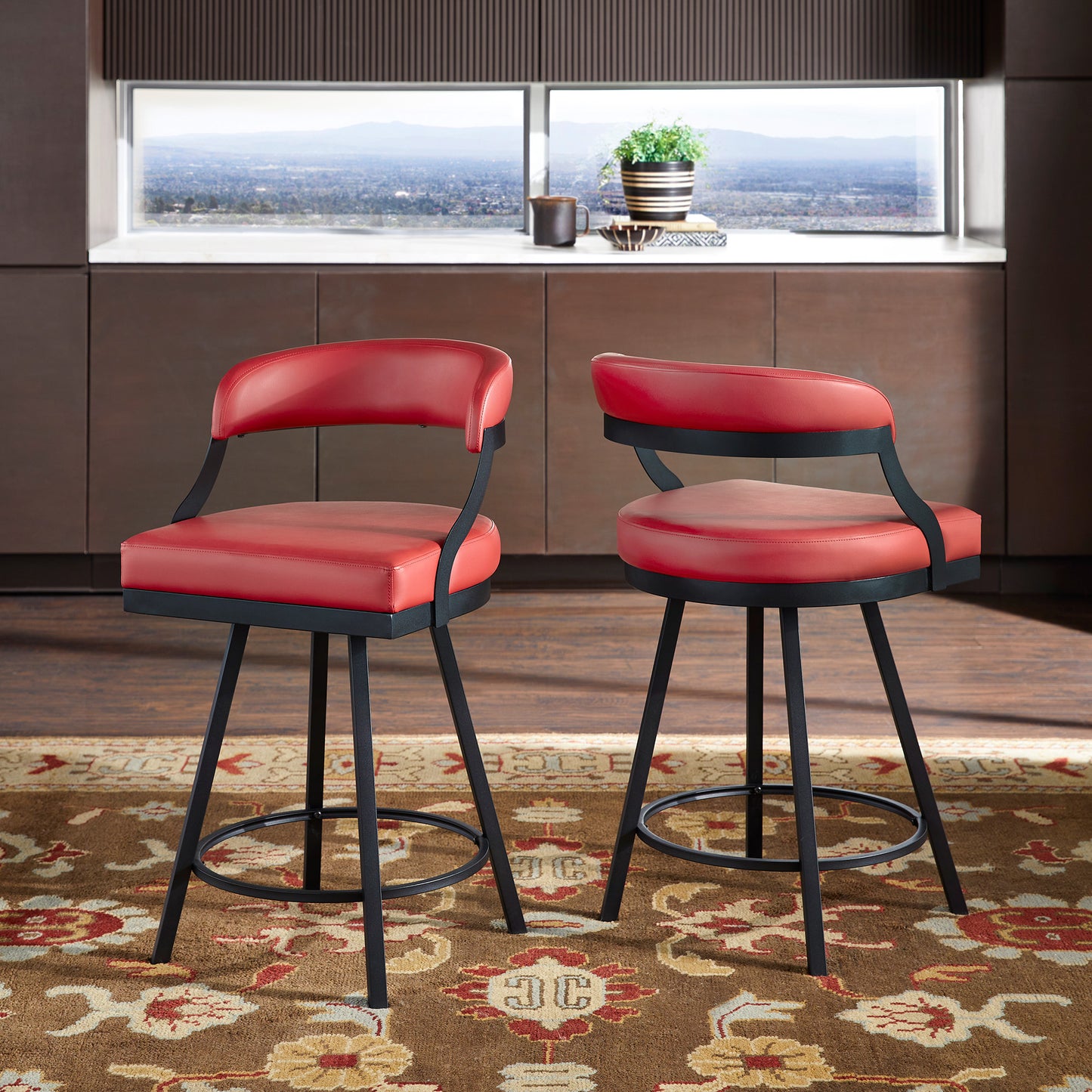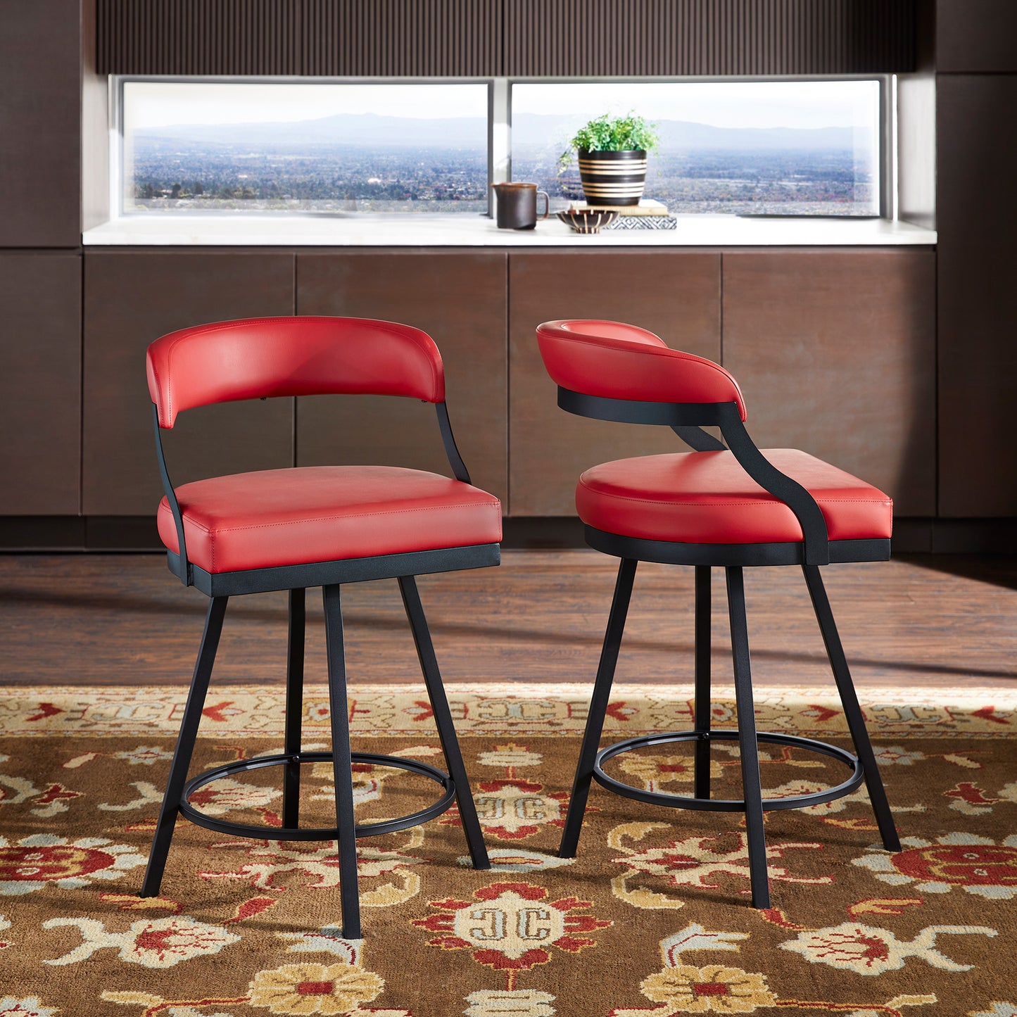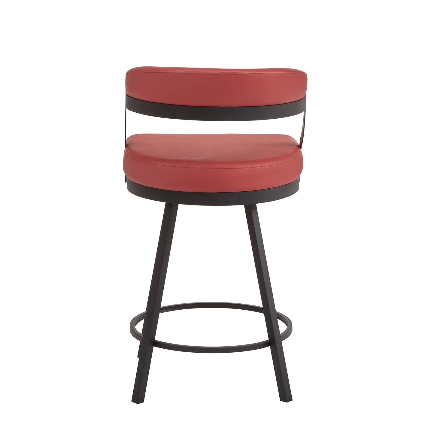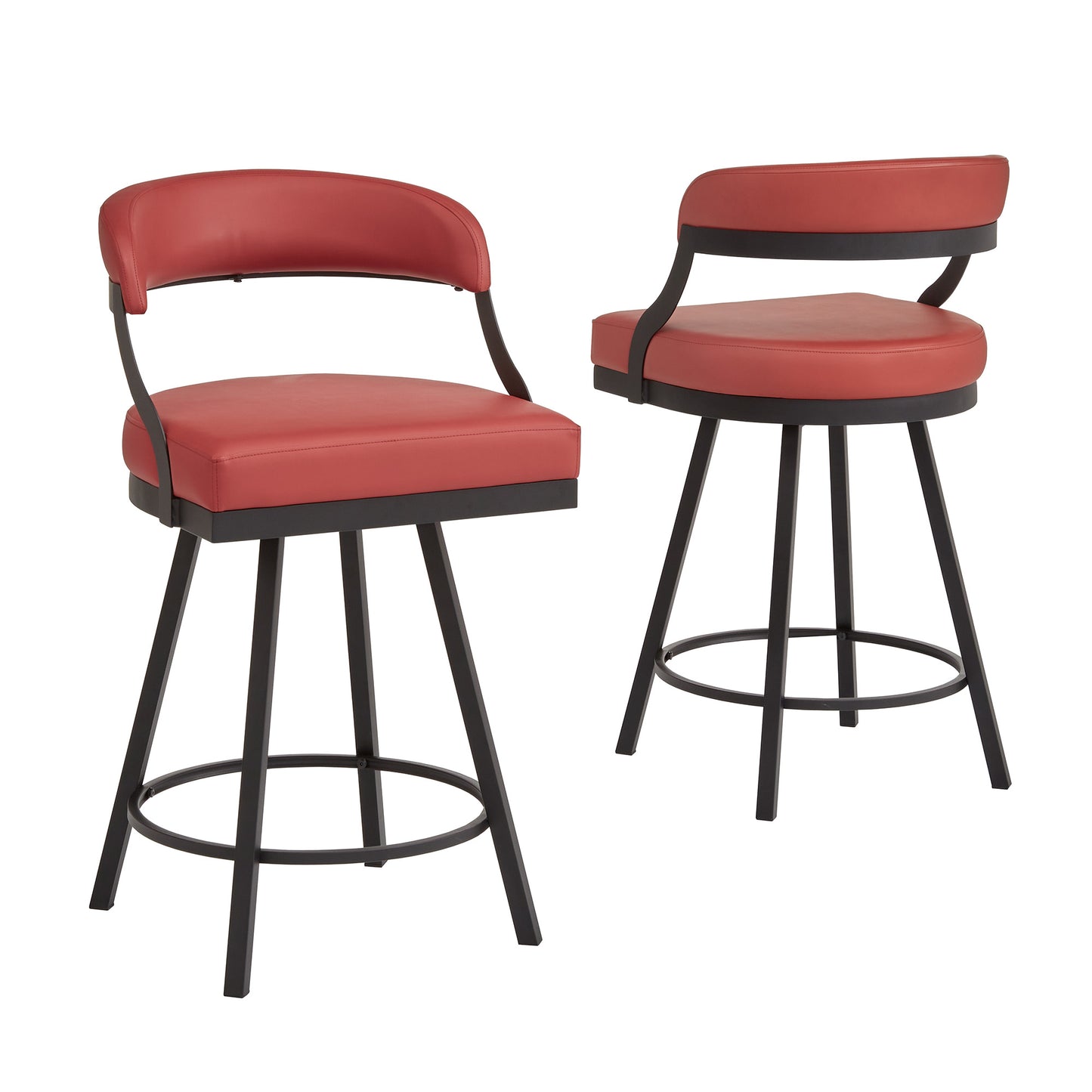 Black Finish Metal Vegan Leather Swivel Chair (Set of 2) - 24 in. Counter Height, Red