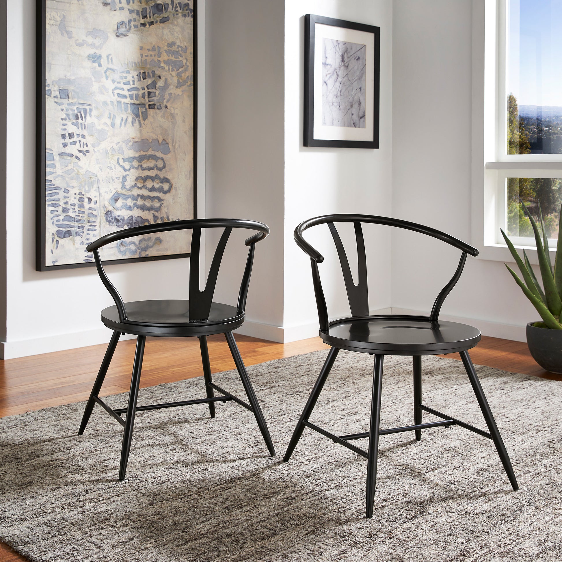 - Wishbone-Inspired Design: Unique metal wishbone silhouette back provides contemporary style to any dining or living space.