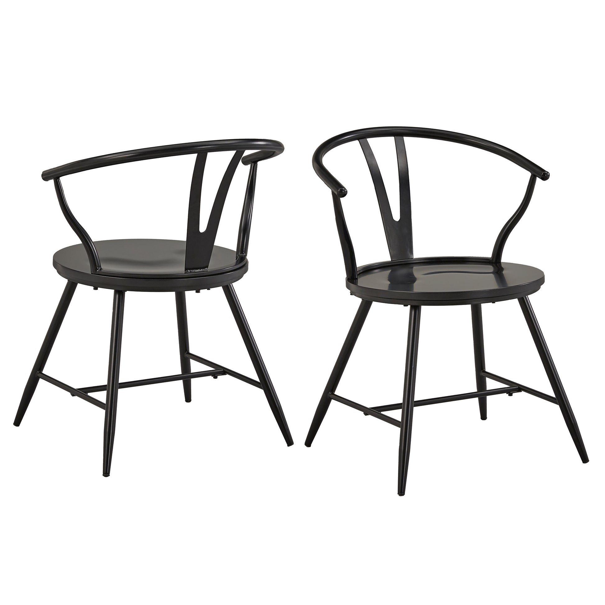 Wishbone Back Metal Side Chair with Wood Seat (Set of 2) - Black