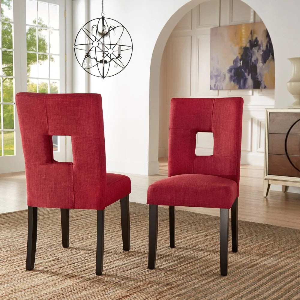 Keyhole Back Dining Chairs (Set of 2) - Red Linen