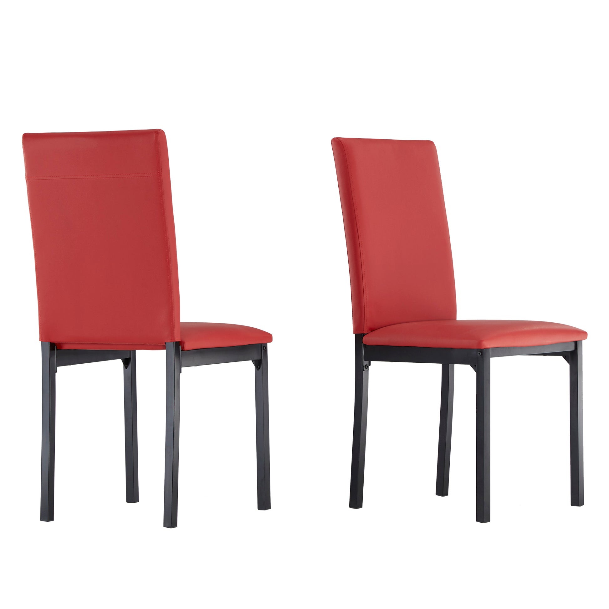 Metal Upholstered Dining Chairs - Red Faux Leather, Set of 2
