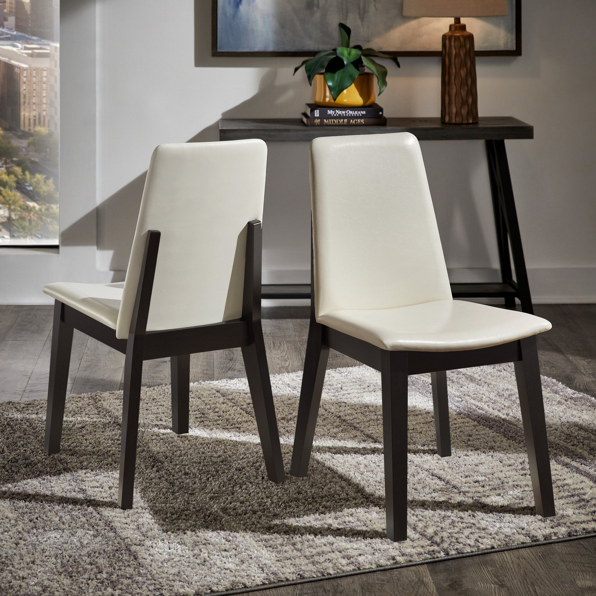 Wood Finish White Vegan Leather Dining Chair (Set of 2) - Black Oak