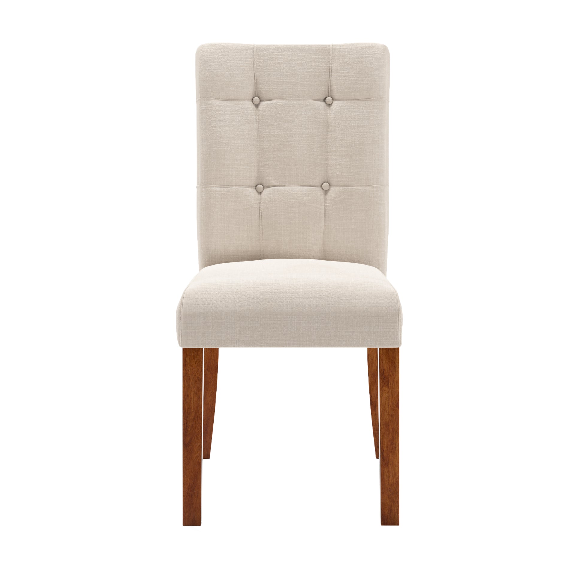 Cherry Finish Upholstered Dining Chairs (Set of 2) - Beige Linen