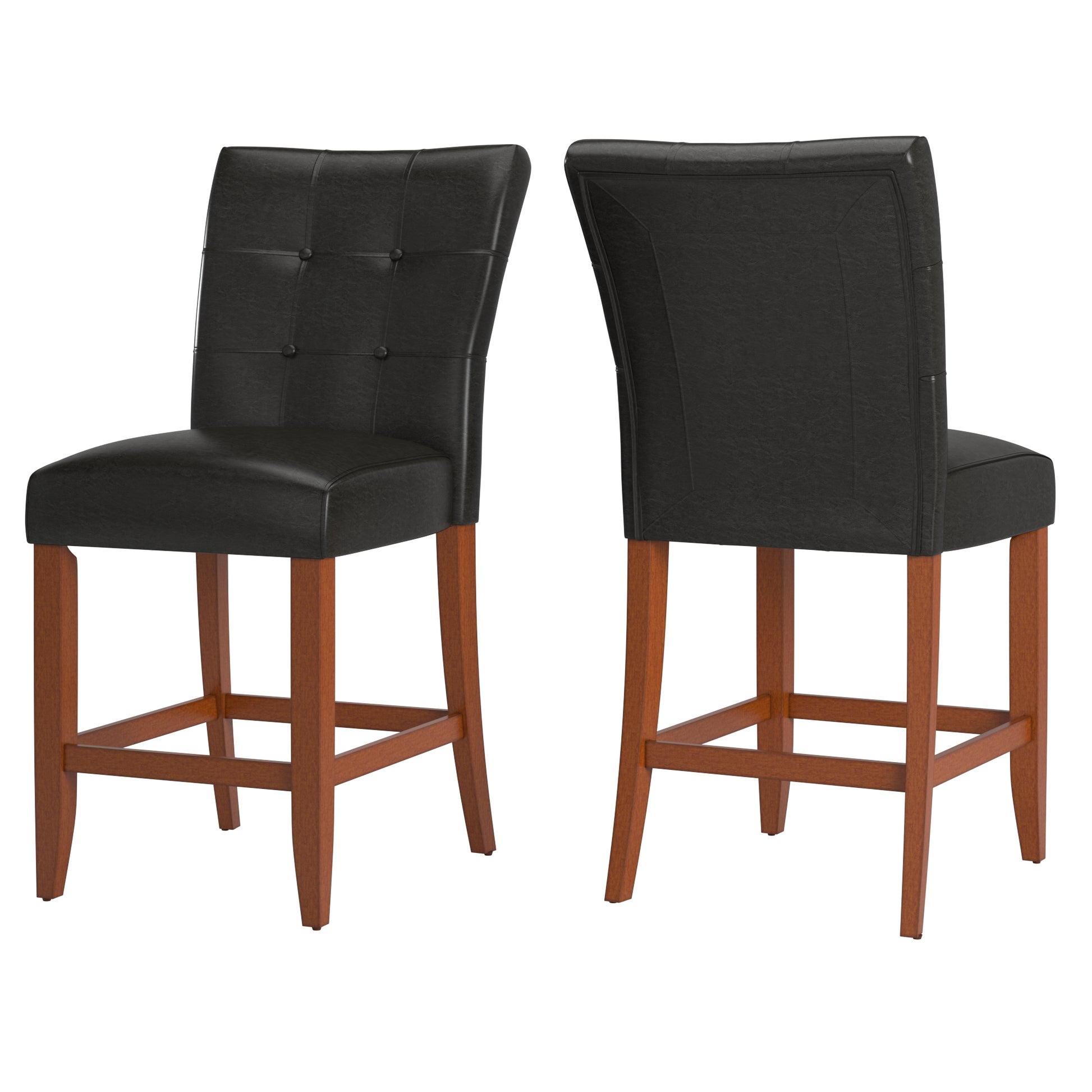 Tufted High Back Counter Height Stools (Set of 2) - Cherry Finish, Dark Brown Faux Leather