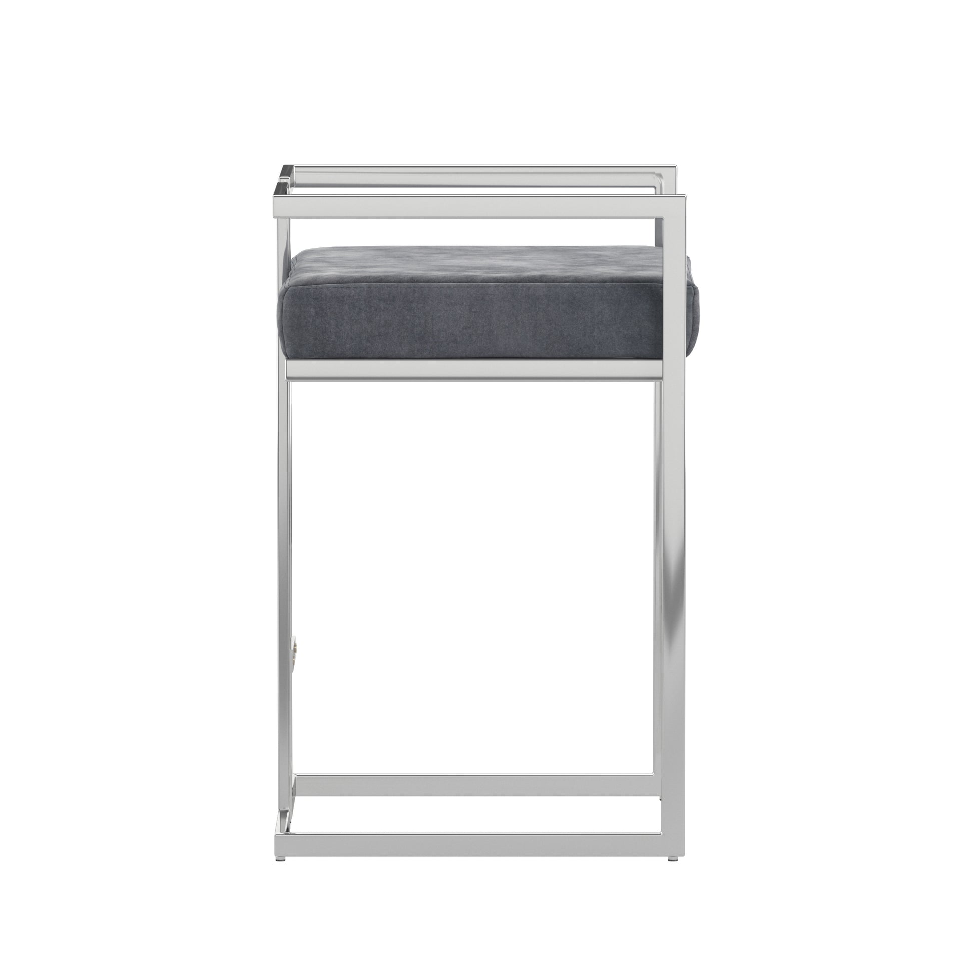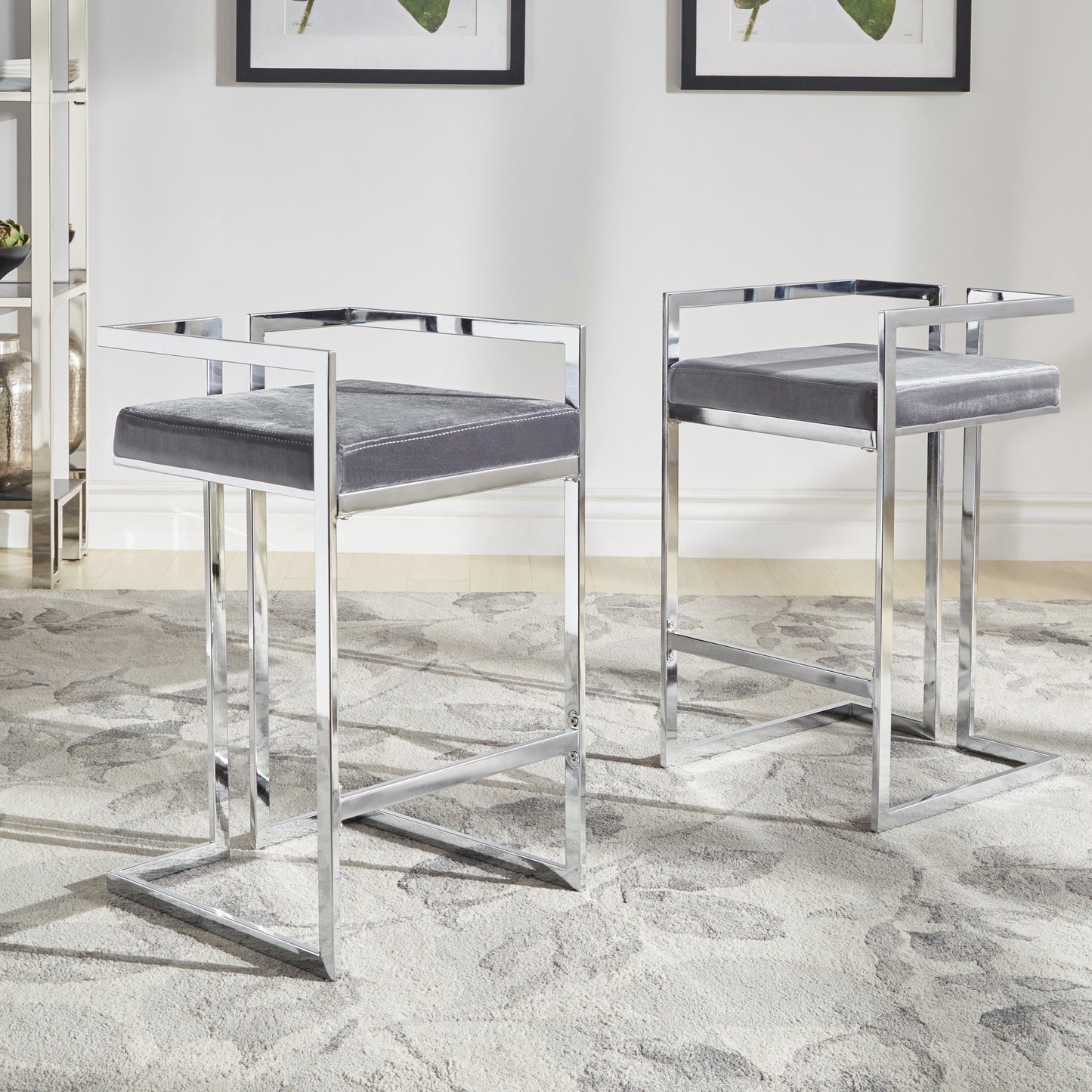 Velvet Upholstered Chrome Metal Counter Height Stools (Set of 2) - Chrome Finish, Blue Steel Velvet