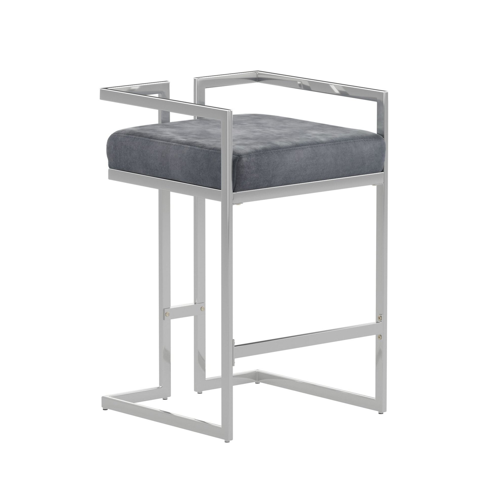 Create a stunning art decor appearance that stands out in your kitchen with this barstool. The chic barstool features a luxurious blue steel velvet upholstery foam filled for ample comfort and a pressed metal frame for a contemporary appearance that lasts. The bold silhouette and high-end finishes create eye-catching detail that is sure to stand out beautifully in your kitchen. This bar stool looks best in a modern, contemporary, or transitional styled space. This barstool was built to last, with enduring comfort in mind.