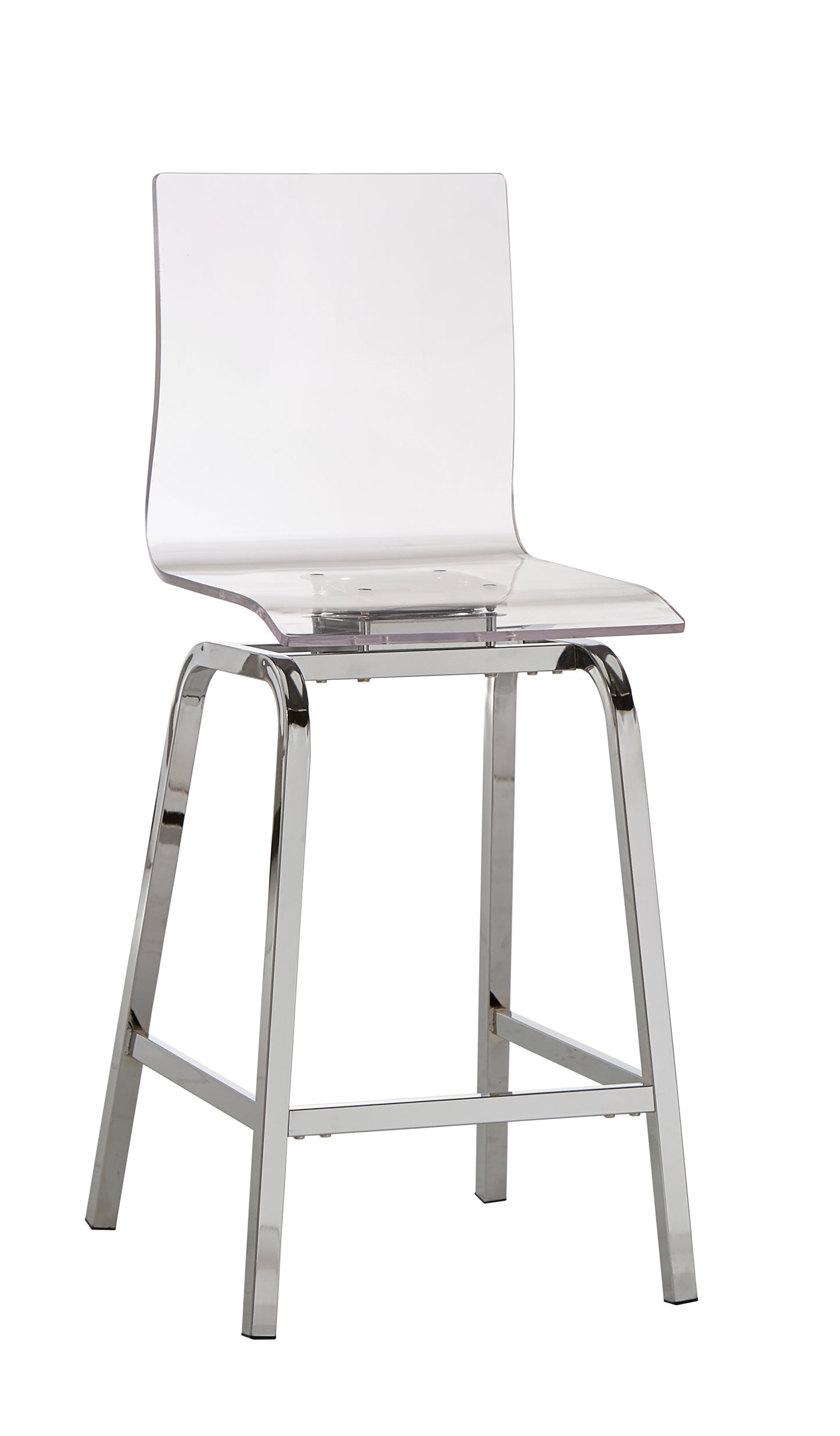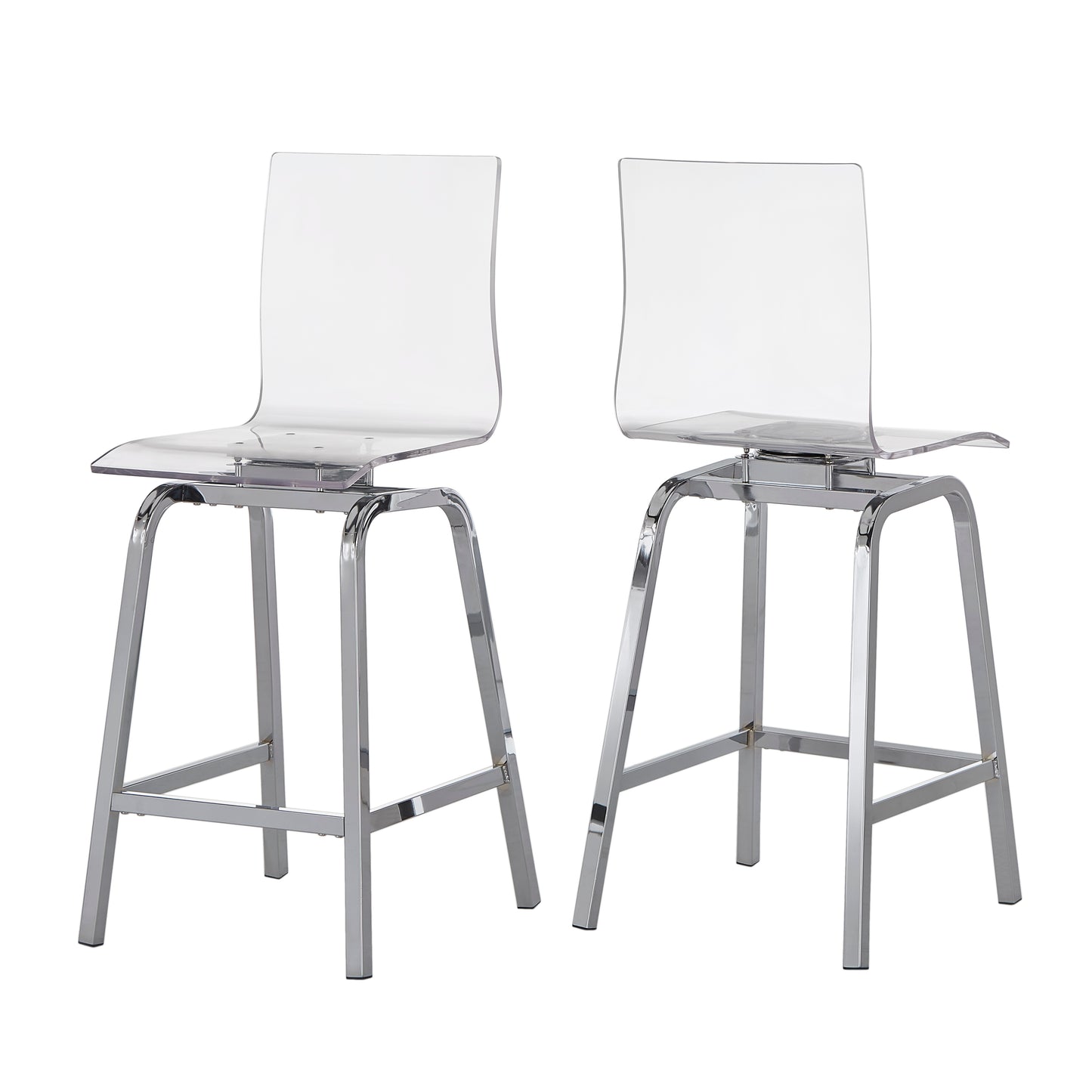 Acrylic Swivel High Back Stools (Set 2) - Chrome Finish, 24" Counter Height