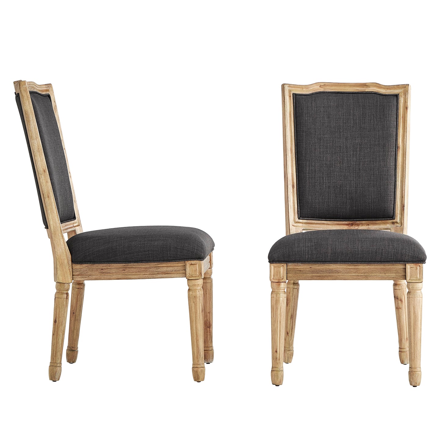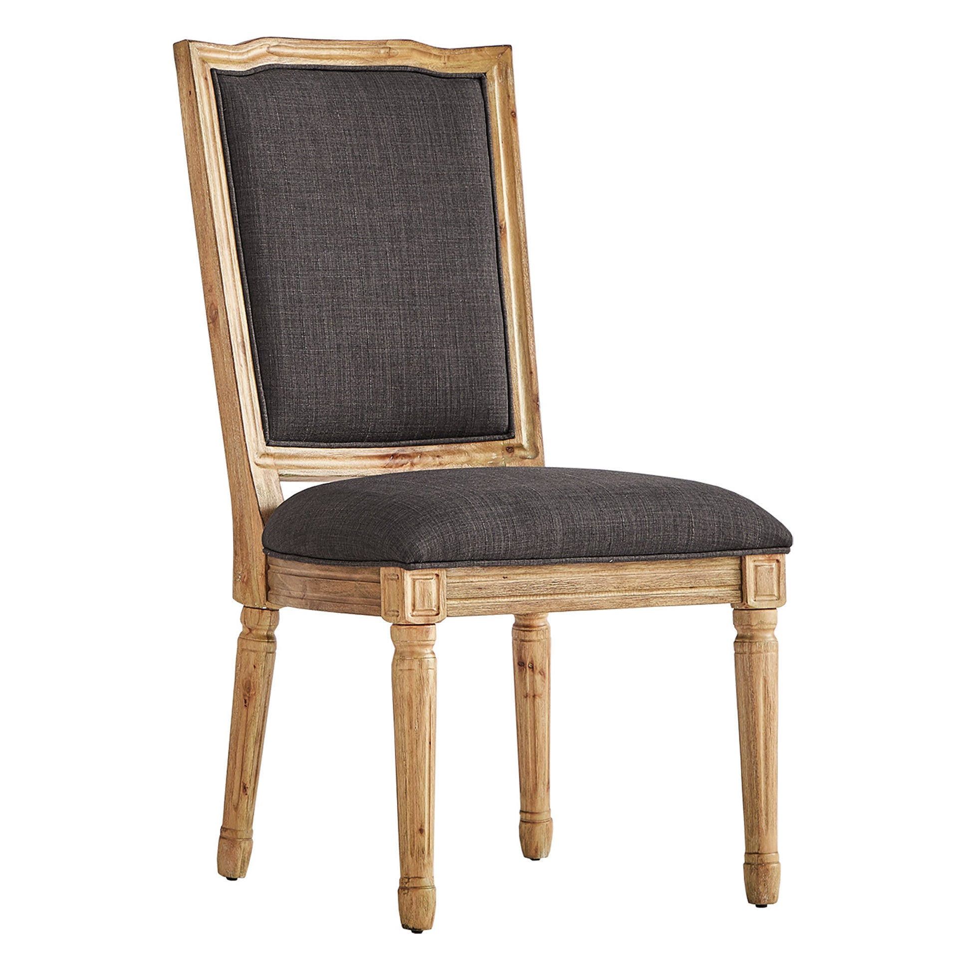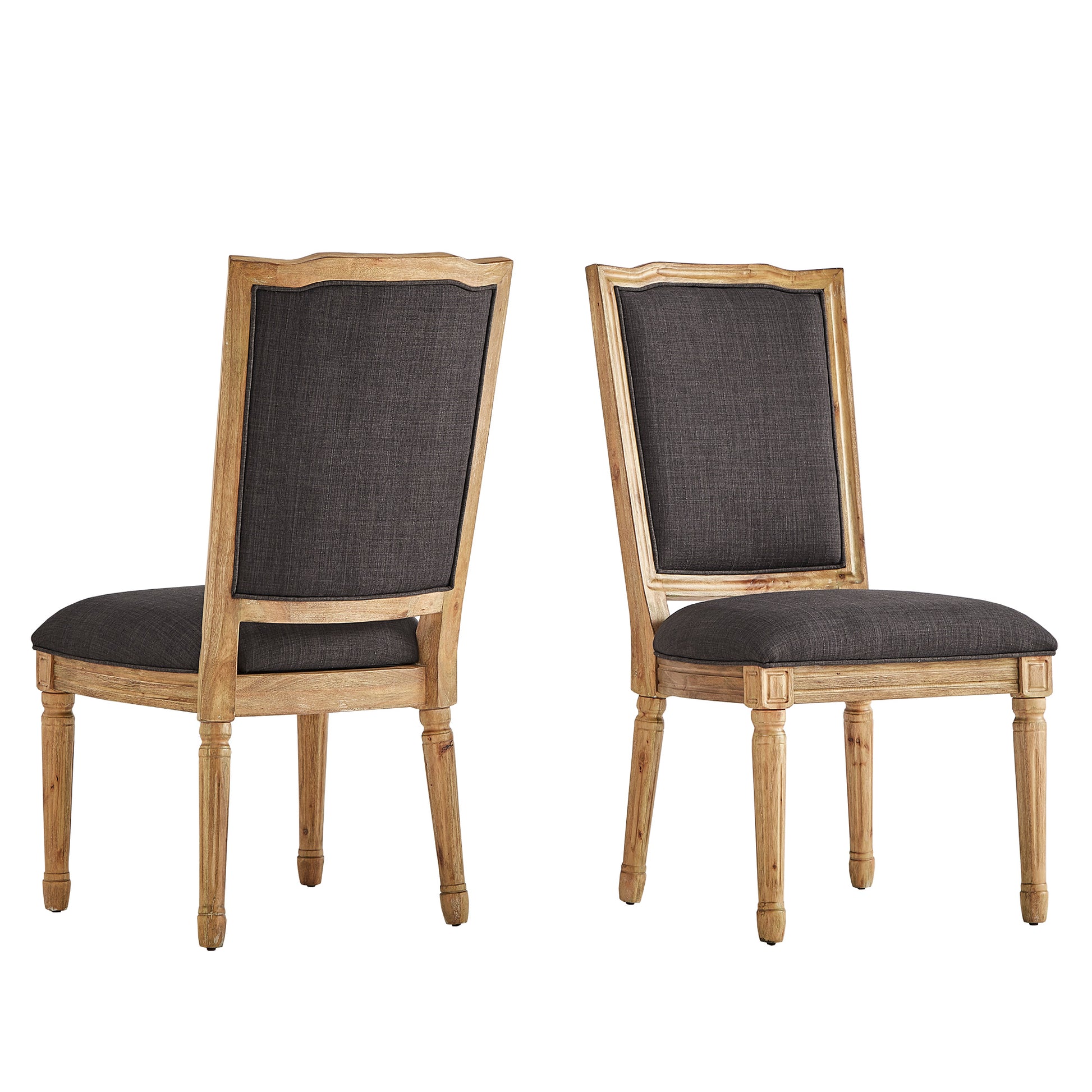 Ornate Linen and Wood Dining Chairs (Set of 2) - Dark Gray Linen, Natural Finish