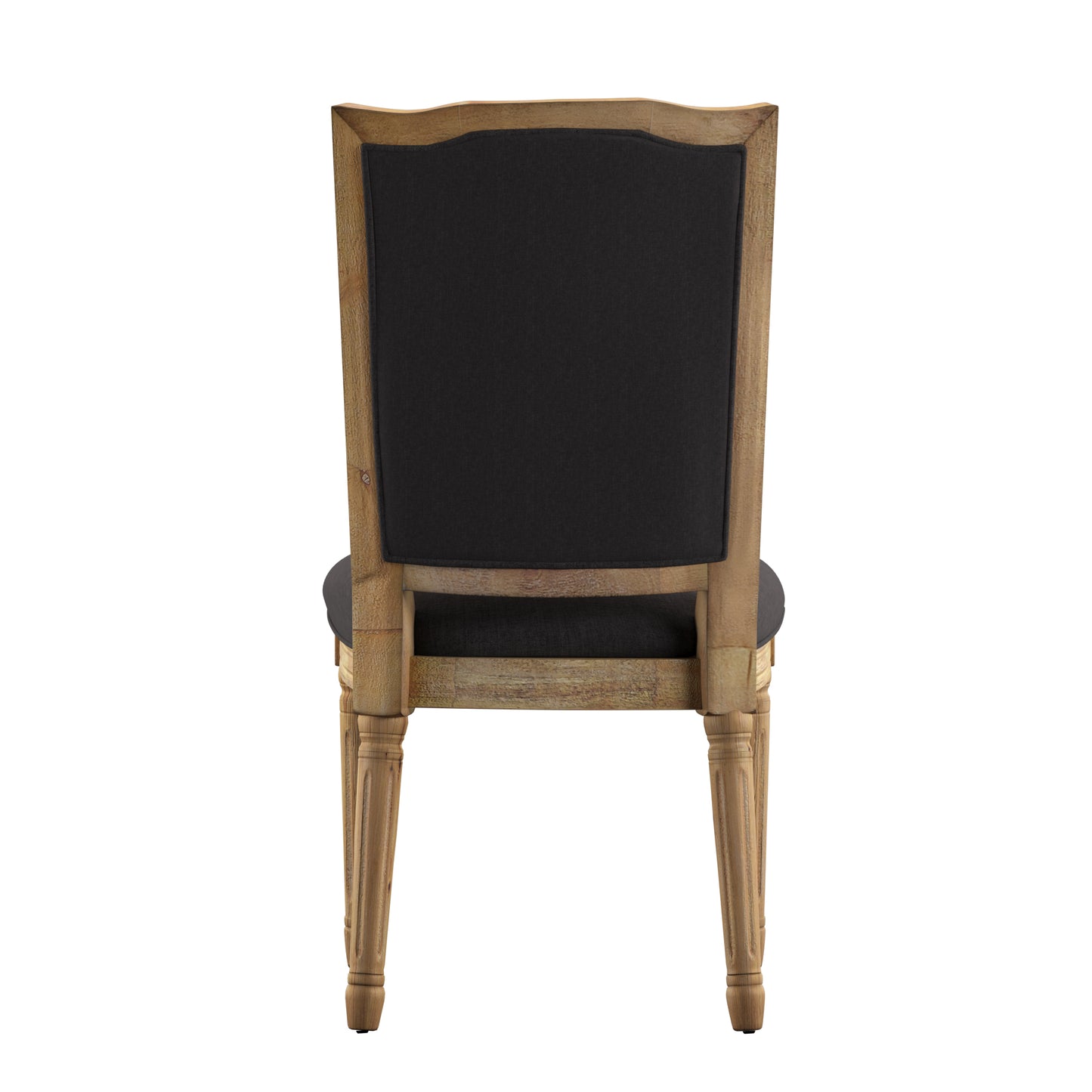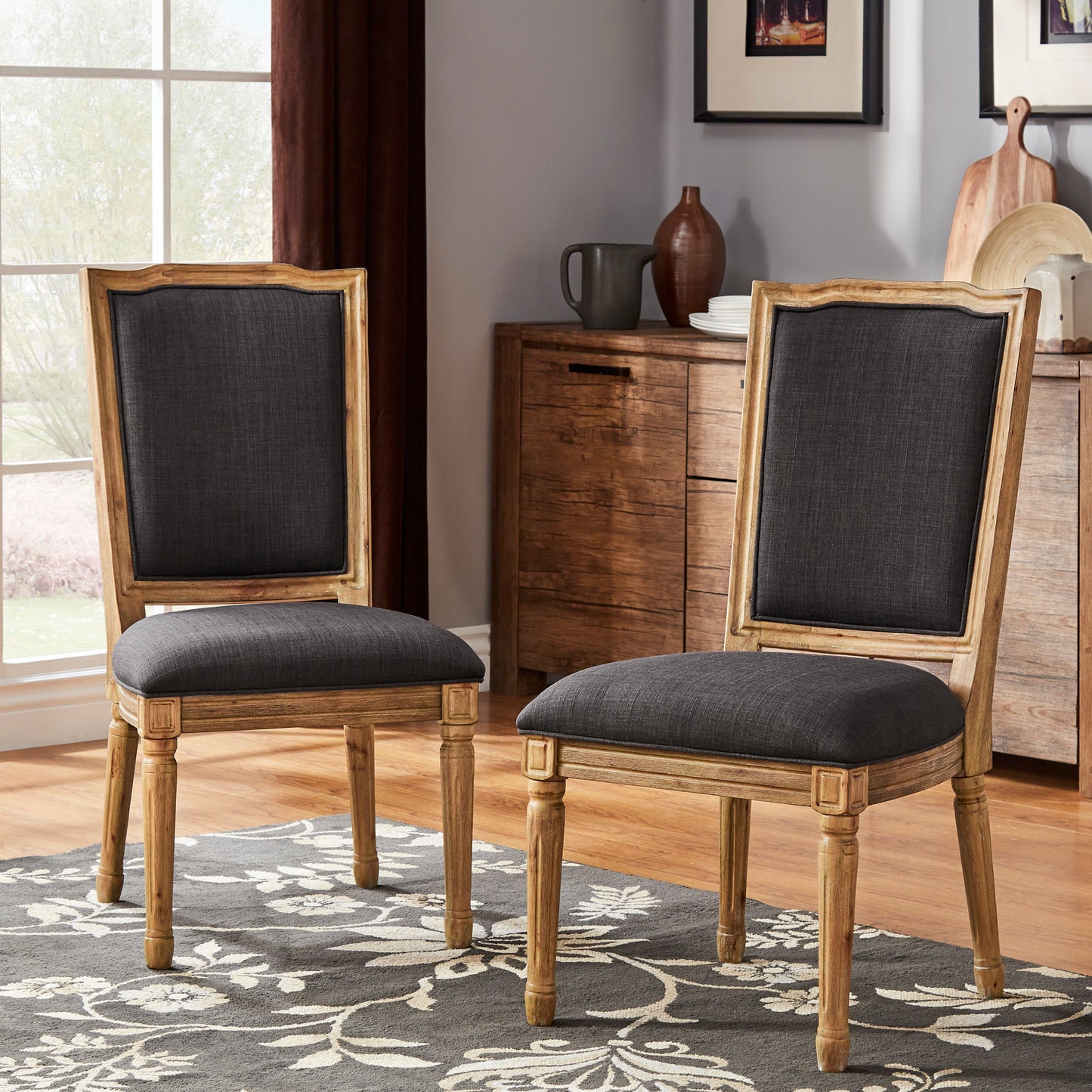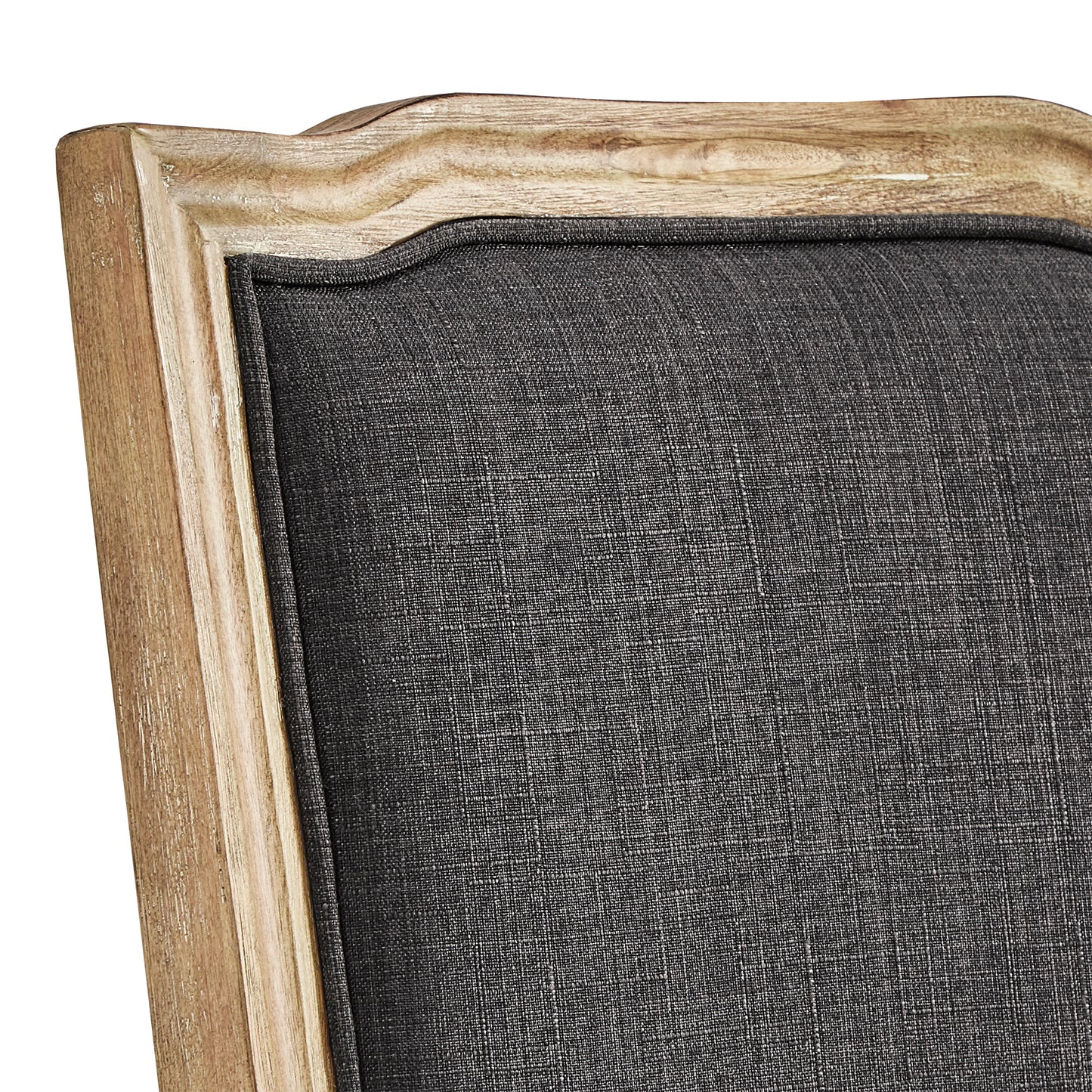 Ornate Linen and Wood Dining Chairs (Set of 2) - Dark Gray Linen, Natural Finish