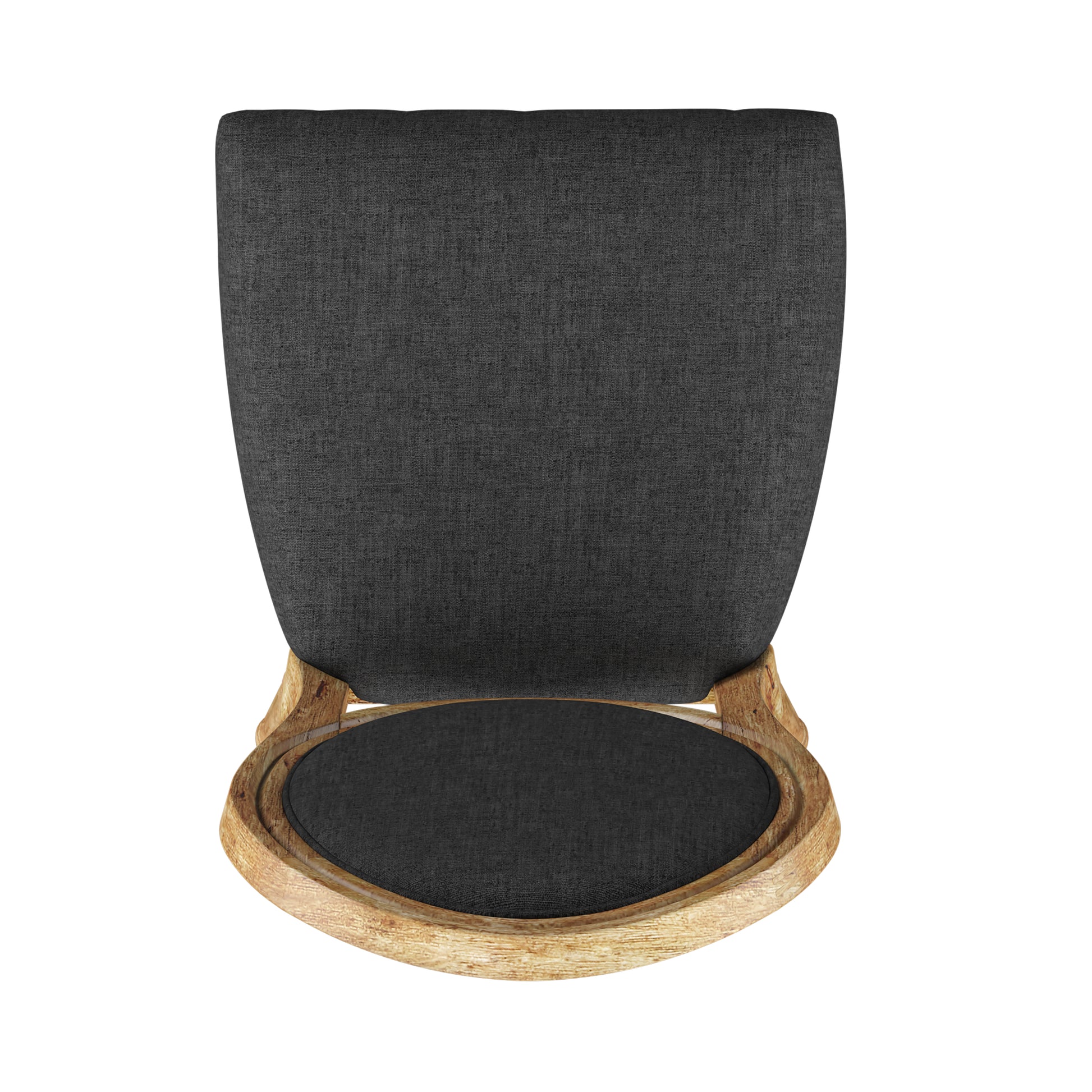 Round Linen and Wood Dining Chairs (Set of 2) - Dark Gray Linen, Natural Finish