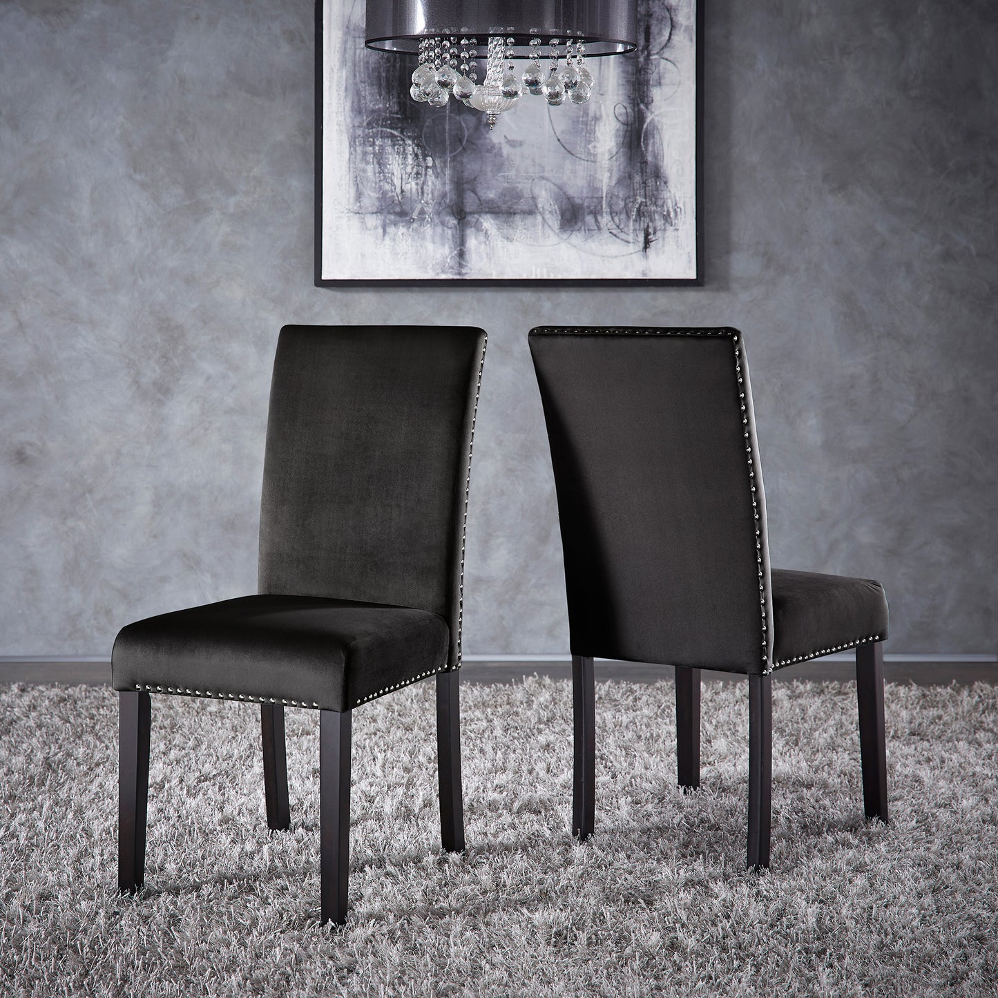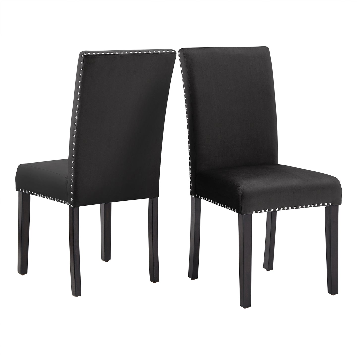 Nailhead Velvet Upholstered Chairs (Set of 2) - Side Dining Chair, Black