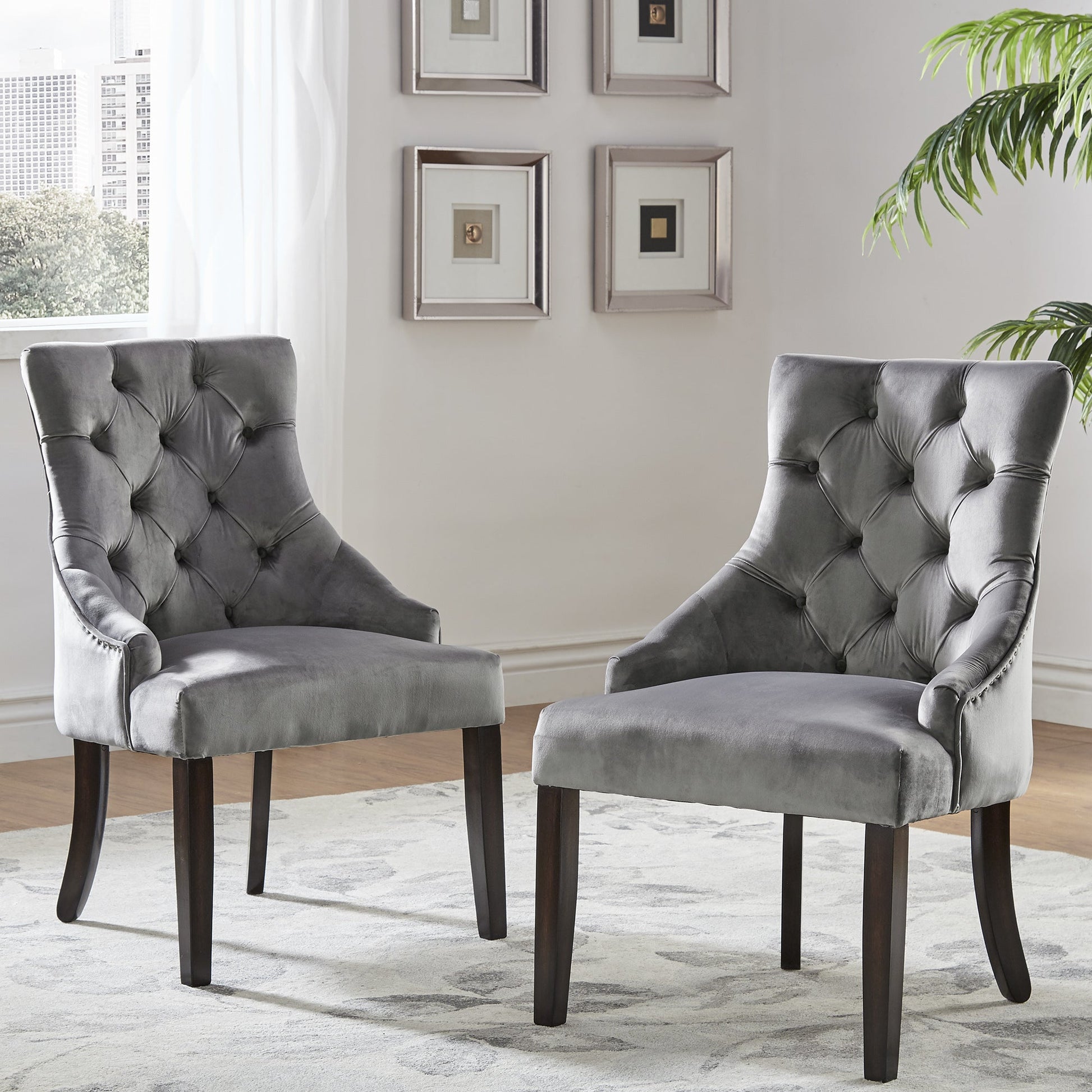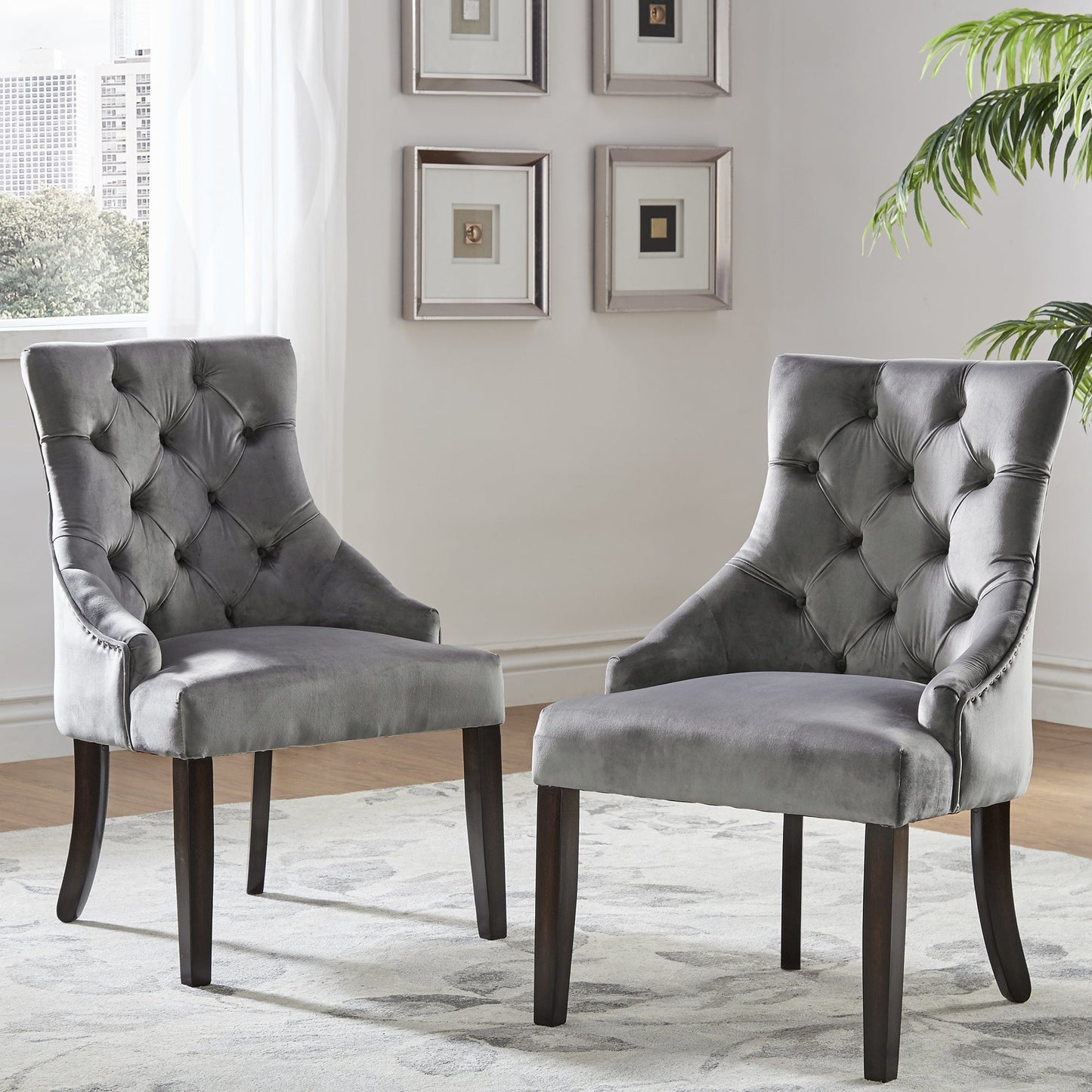 Velvet Button Tufted Wingback Dining Chairs (Set of 2) - Gray Velvet