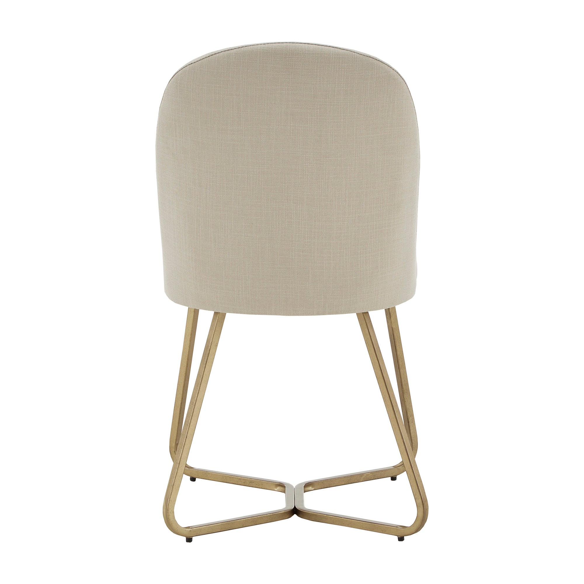 A simple shape meets glam elements with the iNSPIRE Q iNSPIRE Q Linen Upholstered Dining Chairs (Set of 2). These chairs feature a comfortable and cozy spot to enjoy a meal with soft fabric cushioned seat and chair backs, while a unique metal base is finished in a styled gold color that pairs well with modern settings.