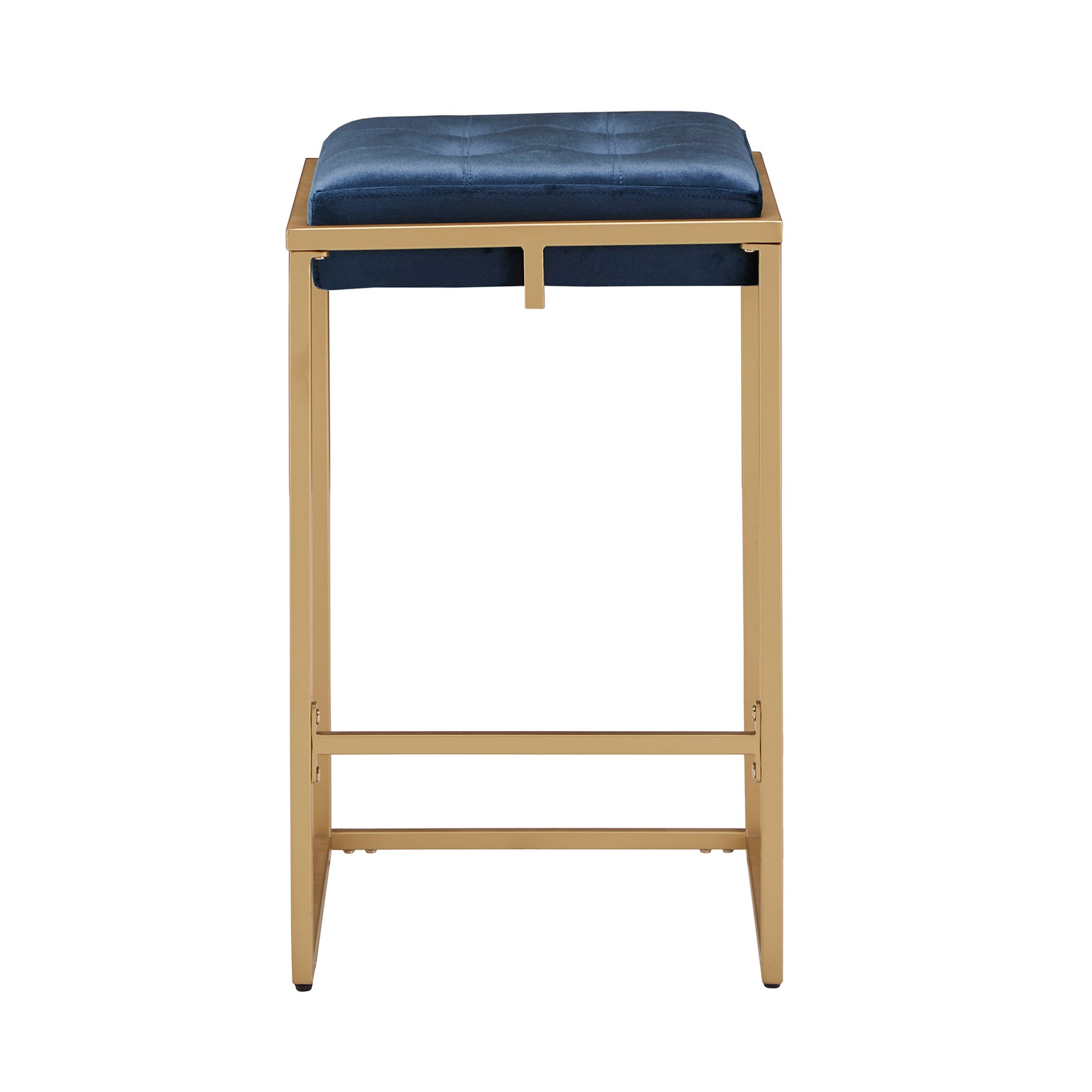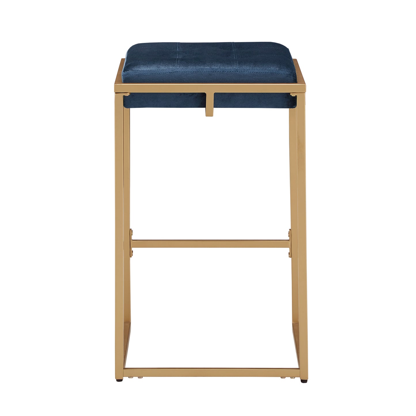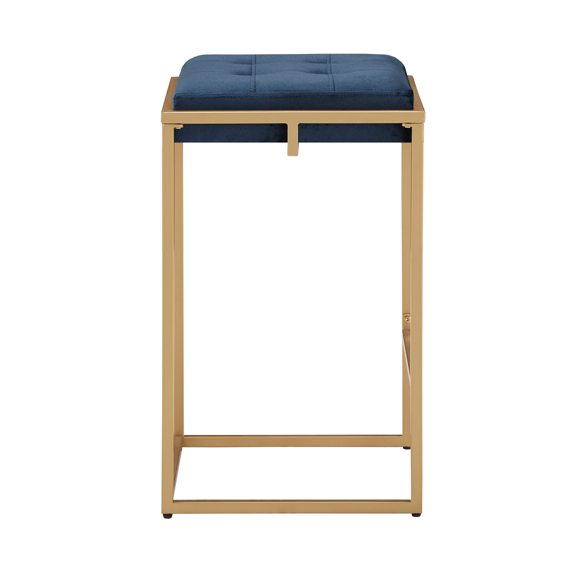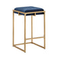 Gold Finish Velvet Button Tufted Bar Stools (Set of 2) - Blue Velvet, 24" Counter Height