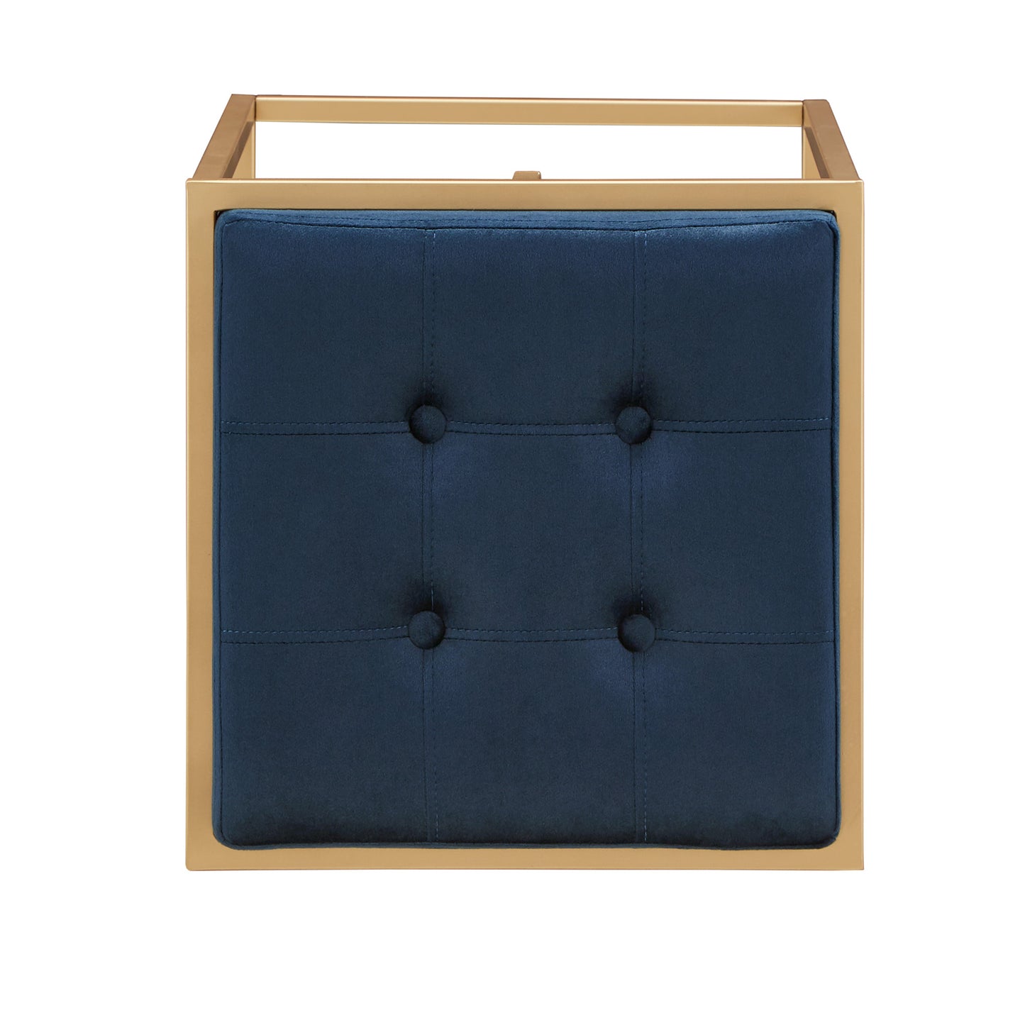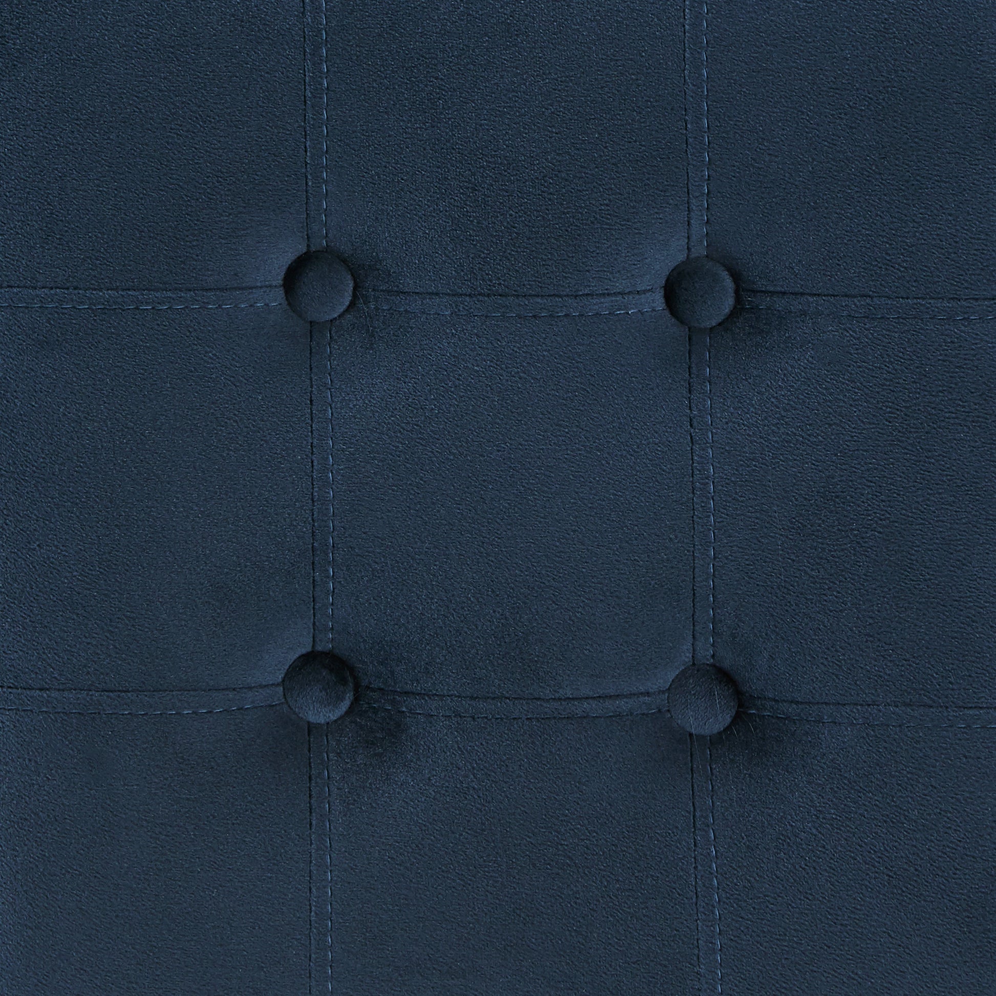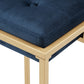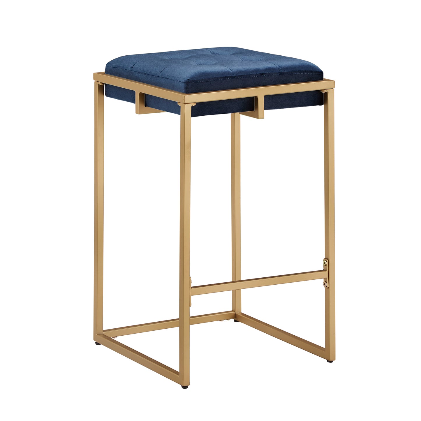 Gold Finish Velvet Button Tufted Bar Stools (Set of 2) - Blue Velvet, 24" Counter Height