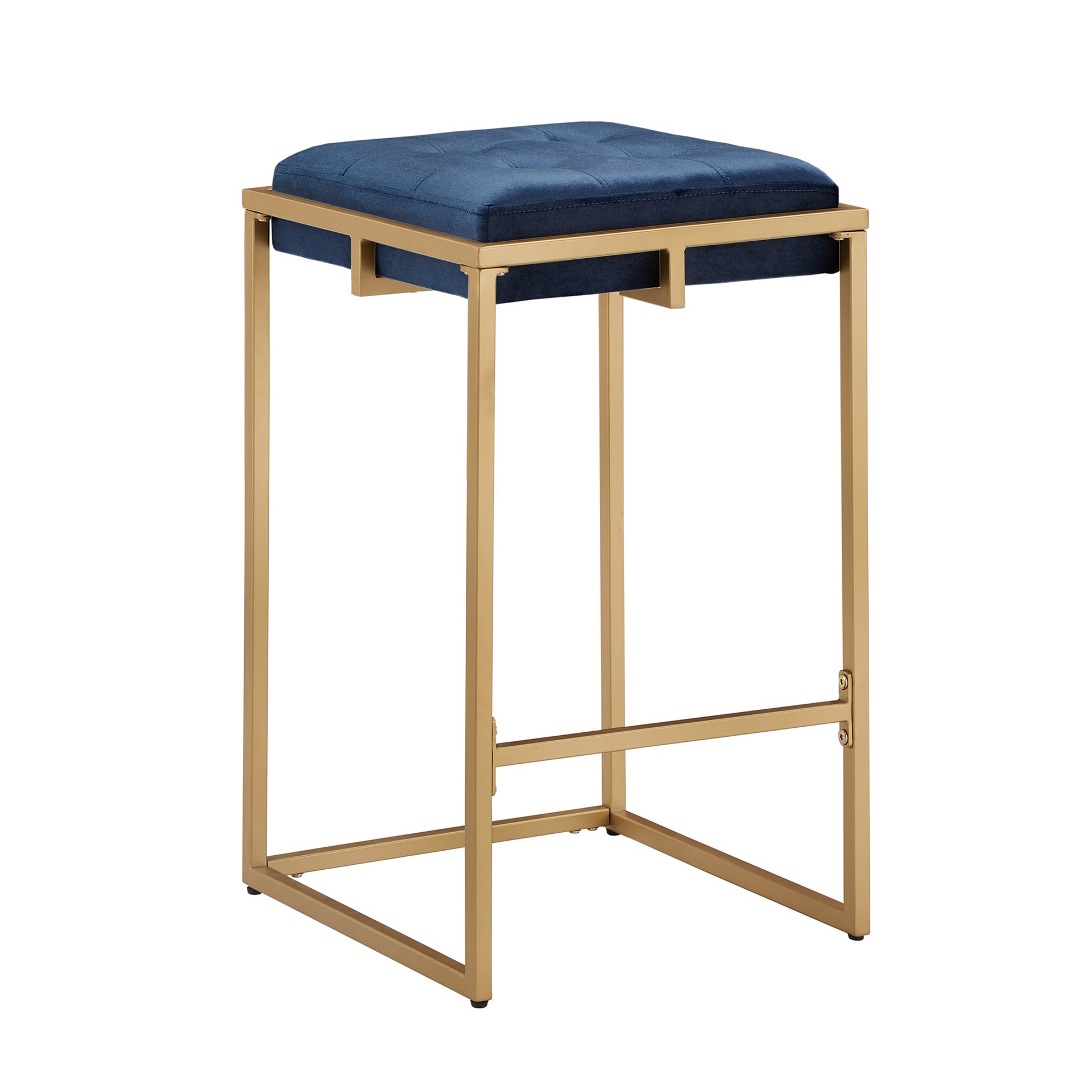 Splash some color in your kitchen or bar area with the iNSPIRE Q Gold Finish Velvet Button Tufted Bar Stools (Set of 2) from iNSPIRE Q Bold. Offering one of the most luxurious seats in the house, these stools fit right in with any eclectic or glam theme. Glittery gold-finished metal bases provide stability as they support plush, foam-filled seats. The seats are upholstered in rich velvet and button-tufted for both elegance and comfort.