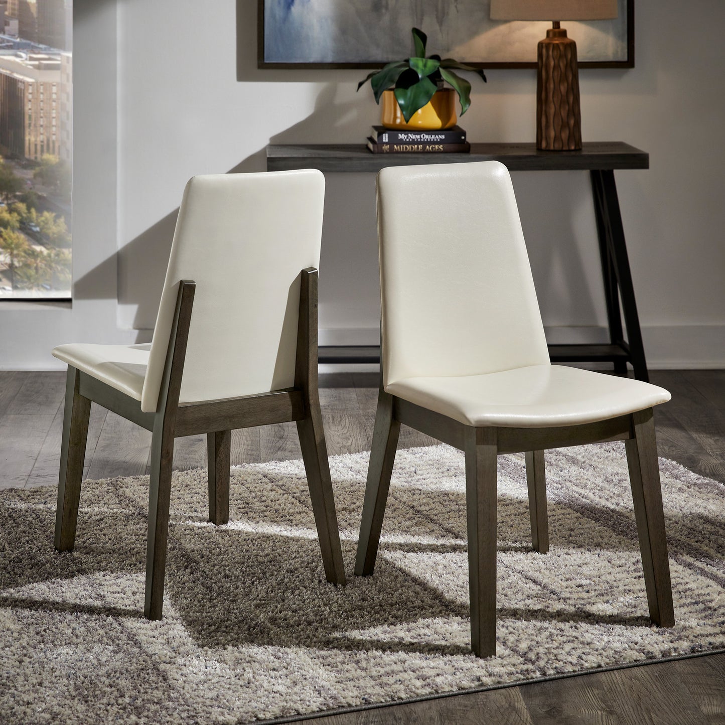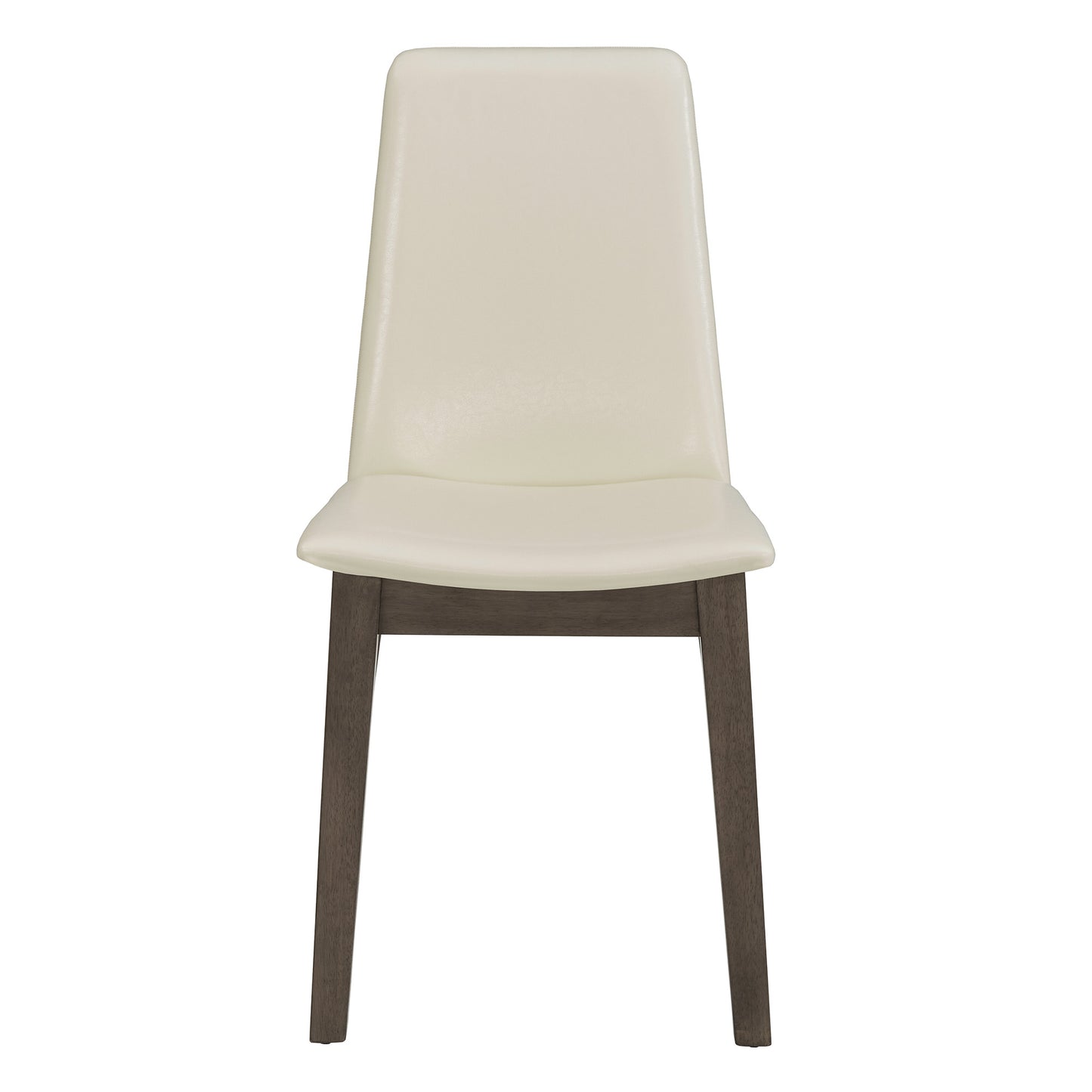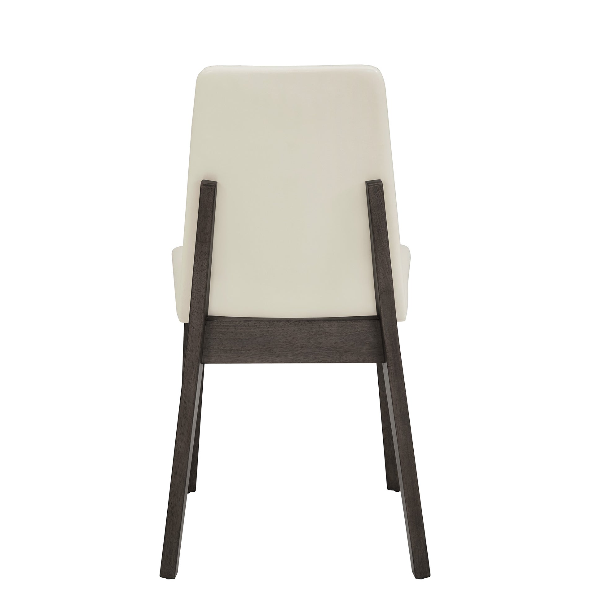 Wood Finish White Vegan Leather Dining Chair (Set of 2) - Gray