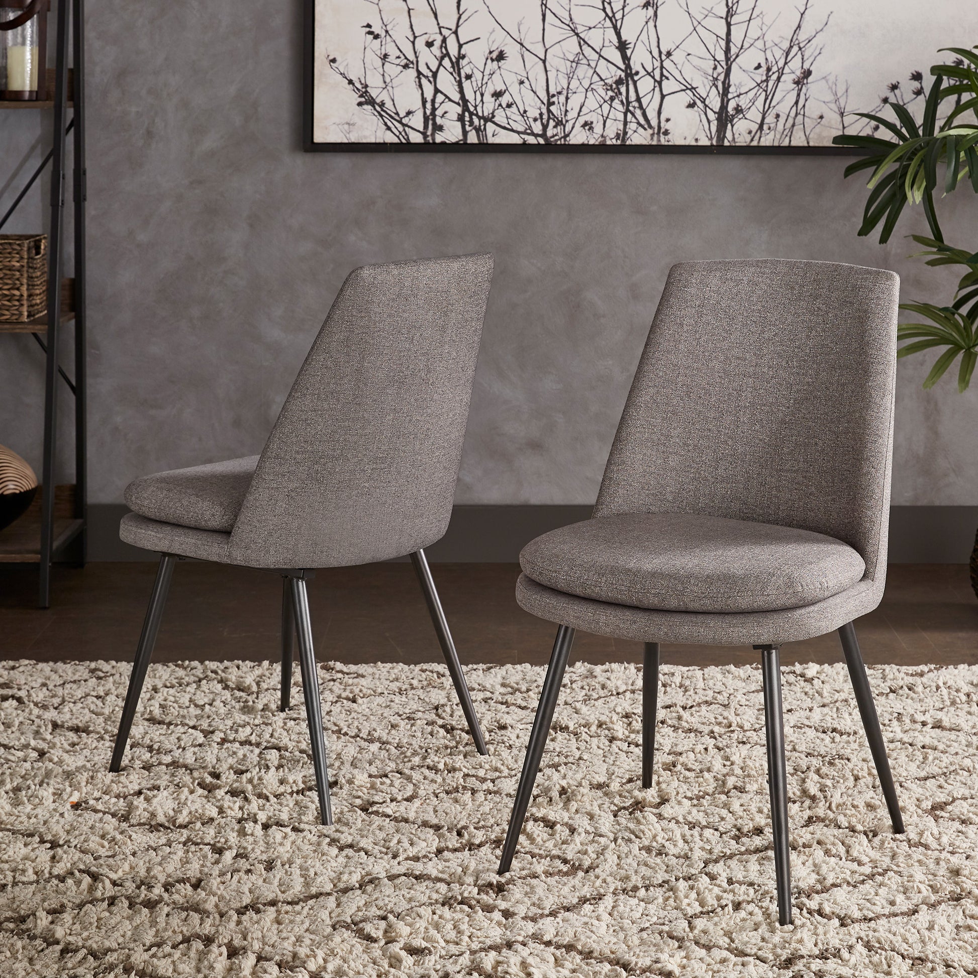 Mid-century modern is brought into the present day with the iNSPIRE Q Upholstered Dining Chairs (Set of 2) by iNSPIRE Q Modern. This chic set includes two chairs, perfect for cozy, casual dining. Founded on sturdy black metal bases, the seats are upholstered with chenille fabric or velvet for comfort at every meal. These chairs can be paired with various color schemes and design styles.