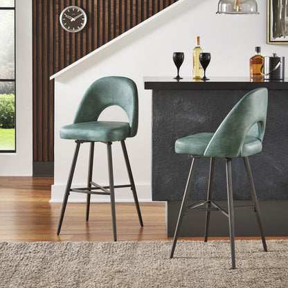 Metal Swivel Stools (Set of 2) - Teal PU Leather, 29" Bar Height