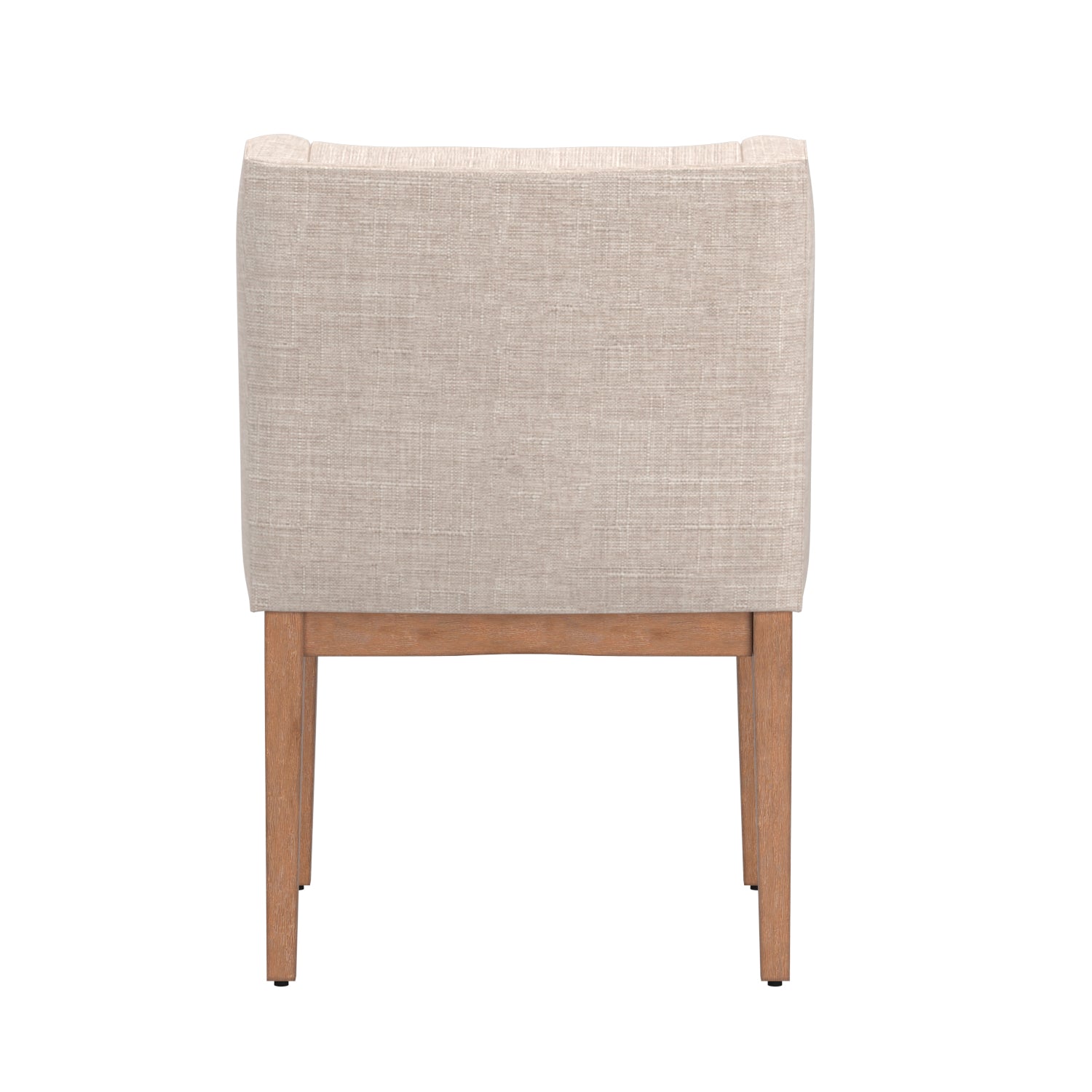Button Tufted Slope Arm Linen Dining Chairs (Set of 2) - Beige Linen, Natural Finish